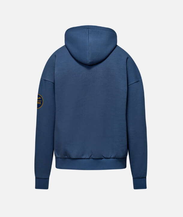 La felpa hoodie è realizzata con un morbido cotone avvolgente e personalizzata con le grafiche della collezione sul petto e sulle maniche.