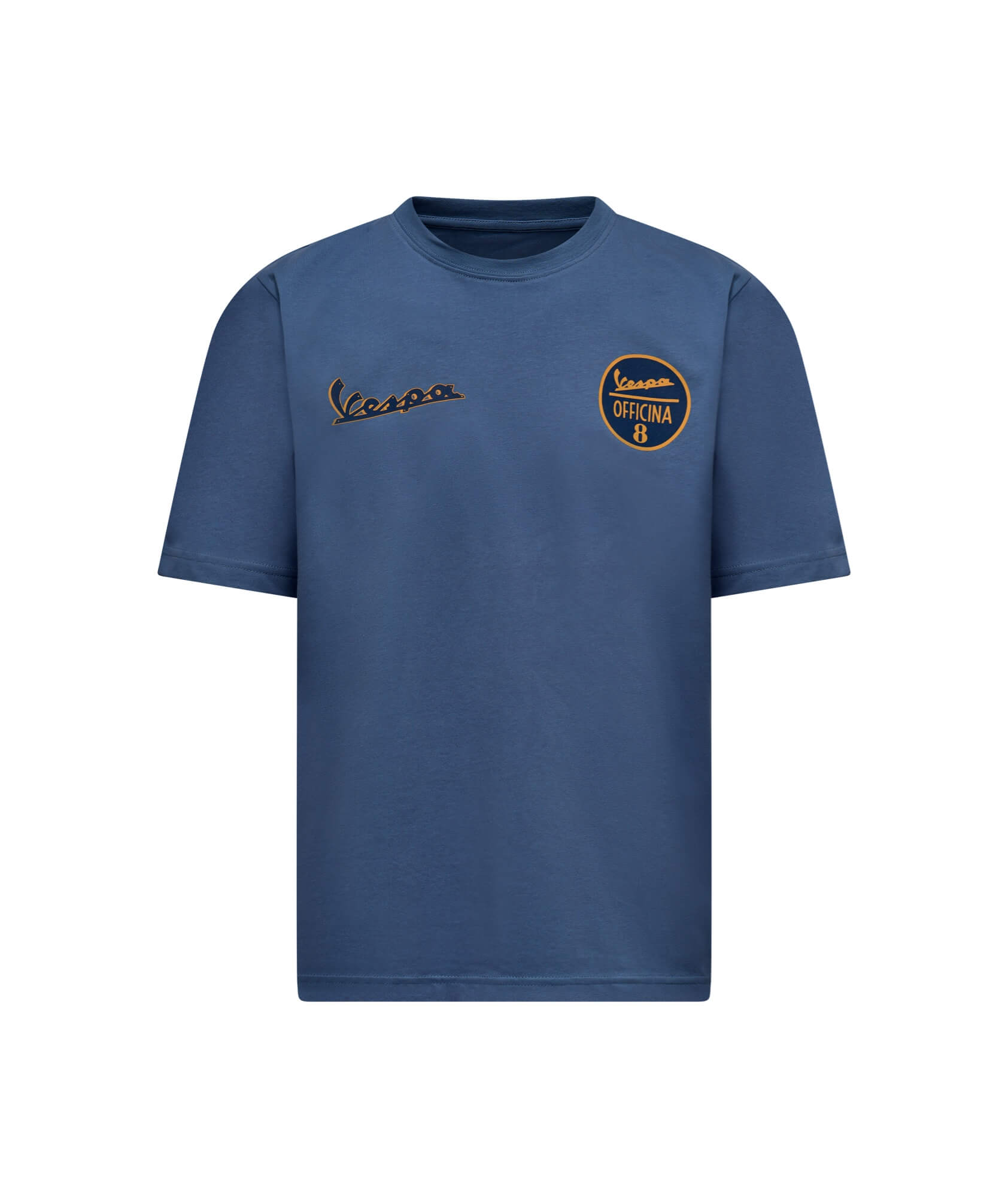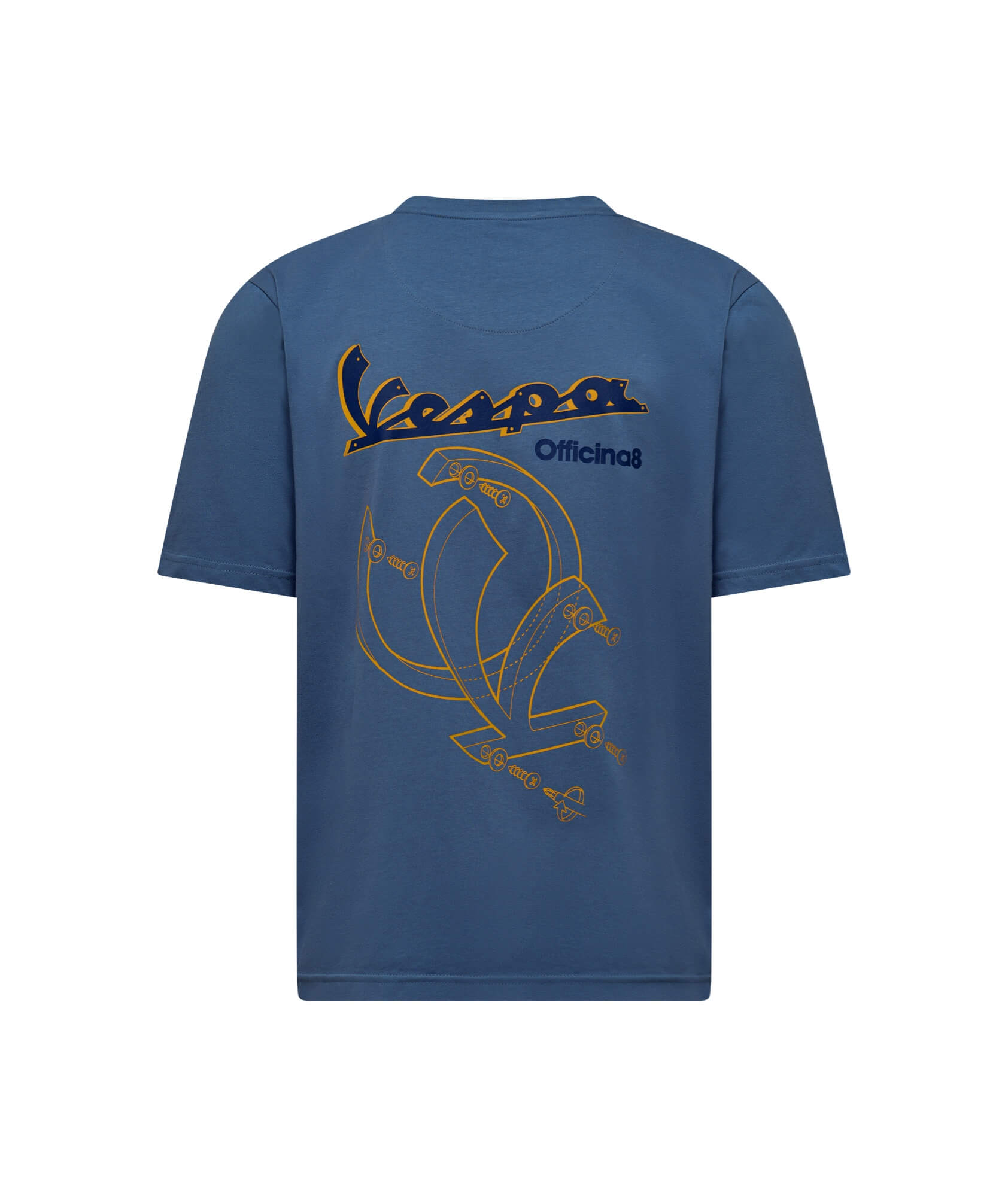 La selezione Apparel Vespa Officina 8 richiama l’estetica workwear attraverso grafiche d’ispirazione industriale. La grafica del logo, audace e inedita, racchiude lo spirito dell’officina: una trasposizione in stile tecnico della “V” stilizzata, scomposta e ricomposta con viti e bulloni.