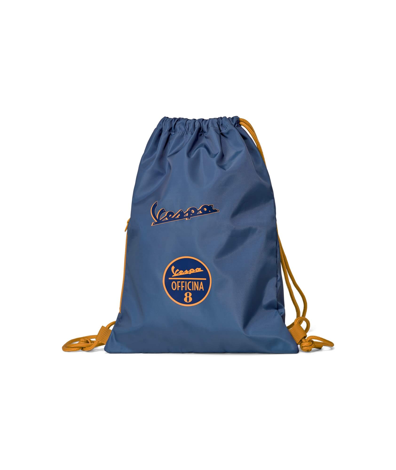 Completano la serie una sacca sportiva con chiusura a coulisse, ideale sia per l’uso quotidiano che per le uscite in sella, e il distintivo portachiavi Officina 8, il regalo perfetto per gli appassionati del mondo Vespa.