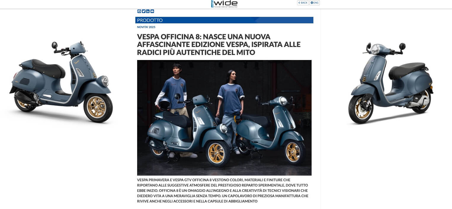 La nuova edizione Vespa Officina 8, declinata nei modelli GTV e Primavera, è un capolavoro di preziosa manifattura, che rivive anche negli accessori e nella capsule di abbigliamento dedicata.