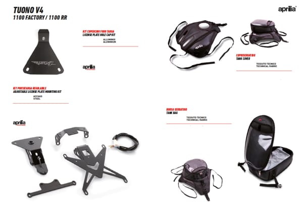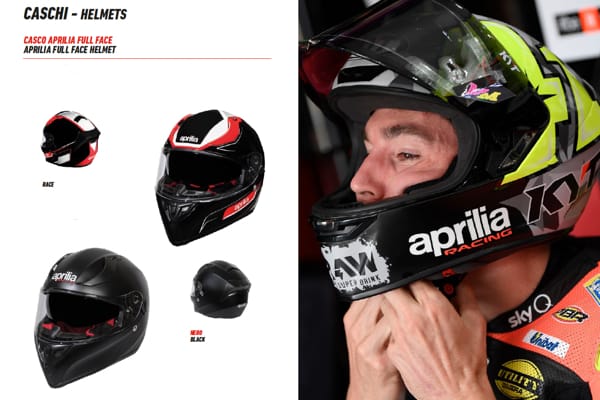 Qui le immagini, modello per modello, tratte dal nuovo catalogo Aprilia Motorcycle Accessories 2019. La carrellata si conclude con gli accessori per il pilota, tra caschi, guanti, occhiali e merchandising. Tutto in puro stile Aprilia!