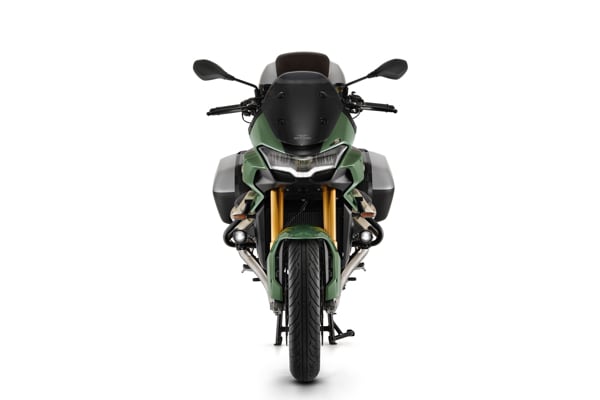 Valigie laterali rigide: si installano sulla moto senza l’aggiunta di alcun supporto e hanno una cover verniciata. Quella di sinistra è di 30 litri; quella di destra è di 29 litri: sono entrambe in grado di ospitare un casco integrale e si aprono con la chiave di avviamento della moto.