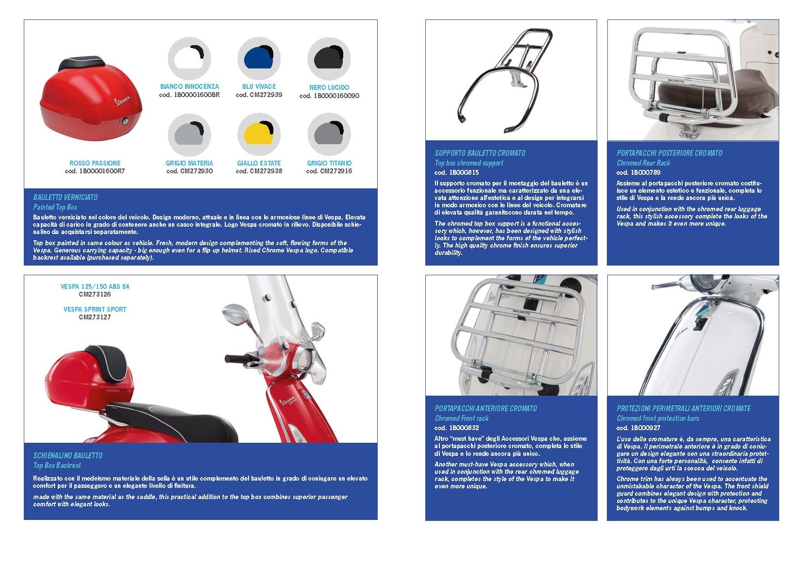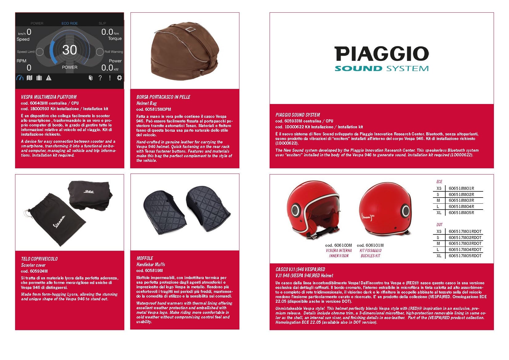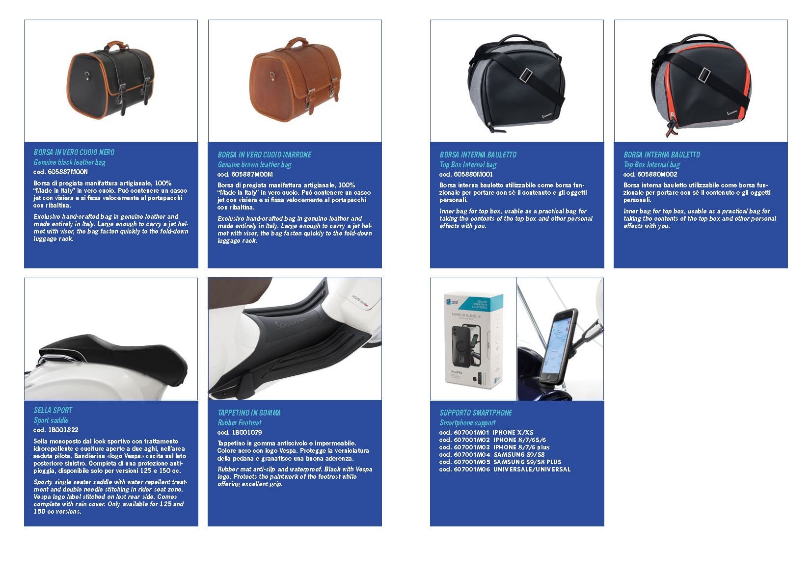Luglio 2019 – Un mondo di design, stile, colore: il nuovo catalogo Vespa Accessori 2019-2020 è una scoperta continua. Un mondo di idee per personalizzare la propria Vespa ed anche il proprio look, per distinguersi e per dichiarare la propria scelta: Vespa! Qualità, originalità e cura dei dettagli sono garantiti. In queste immagini, sfogliamo insieme il nuovo, sorprendente catalogo Vespa accessori che offre tante novità, tutte da scoprire.