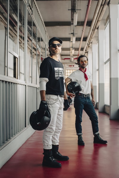 Per celebrare il 100° anniversario di Moto Guzzi, i due marchi hanno collaborato per lanciare una collezione unica che include stivali, una giacca di pelle, pantaloni e t-shirts.