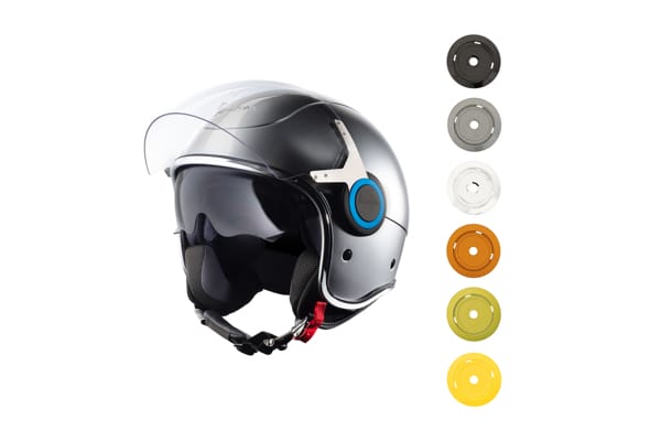La massima protezione è garantita dal parabrezza realizzato in metacrilato anti scheggia di alta qualità, personalizzato con logo Vespa; le aste di supporto sono realizzate con finitura cromata in linea con gli altri dettagli estetici. Vespa Elettrica può essere equipaggiata anche con un cupolino – disponibile sia in materiale trasparente sia fumé – che completa elegantemente il design frontale del veicolo.