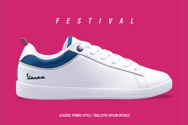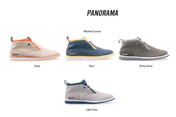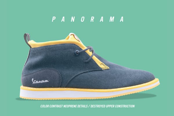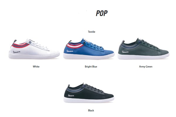 VESPA SHOES. Freccia, Corsa, Brighton, Valvola, Pop, Festival, Panorama sono i modelli per questa stagione primavera-estate 2018; calzature di qualità (per uomo e donna), curatissime nei dettagli, con loghi Vespa in vista, dalle forme morbide e dai colori ispirati alle livree della gamma veicoli. Qui tutti i modelli.