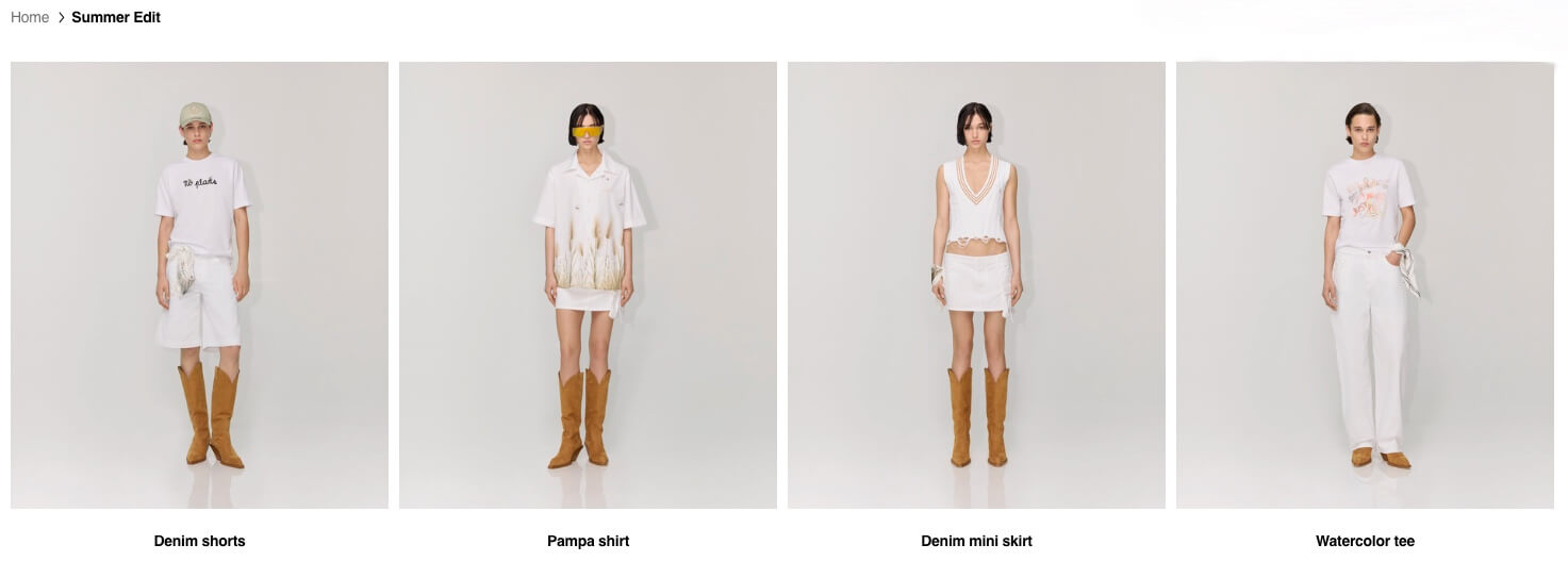 Gilet in cable knit e barn jacket, che raccontano una storia di campagna e di città, di versatilità easy-to-wear. Il denim morbido, la minigonna con tasche cargo, rappresentazione di una giovinezza che non ha paura di essere espressa. Un suit senza costrizioni, un bomber di pelle che avvolge con il suo fit boxy, e i chaps che evocano il selvaggio West, la terra degli esploratori.