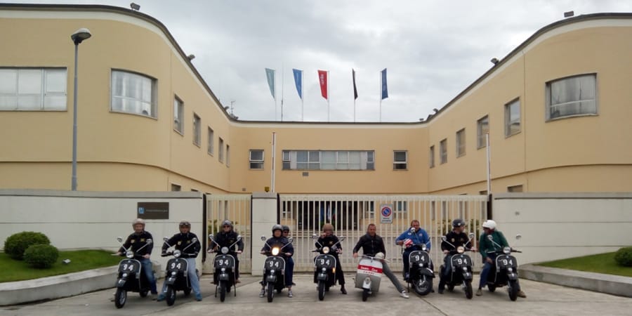 I felici possessori di questa speciale Vespa erano tra i protagonisti del raduno che lo scorso 24 aprile a Pontedera ha festeggiato la nascita del celebre scooter, con immancabile scatto fotografico davanti alla sede del Gruppo Piaggio.