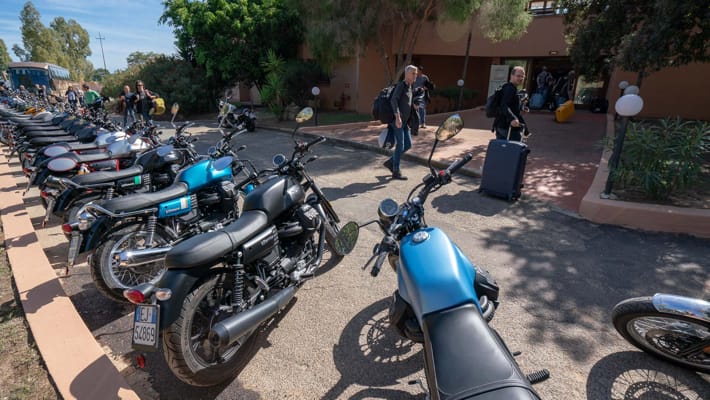 UN’AVVENTURA, MILLE EMOZIONI: QUELLE DELLA 6TH MG EXPERIENCE IS MOLAS, SARDEGNA. Il sole è alto e l’estate è ancora saldamente aggrappata al suolo della Sardegna. Siamo alla sesta Moto Guzzi Experience in Sardegna (27-30 settembre 2018) e conosciamo bene il rituale di benvenuto dell’Is Molas Golf Resort; eppure la visione di quella lunga schiera di Moto Guzzi scintillanti al sole, che sembra non finire mai, ci folgora come se fosse la prima volta. ’Ciao!’, ’Where do you come from?’, ’Che moto hai?’. Facce sorridenti, lingue diverse, accenti che si intrecciano, molte aspettative, tutti una gran voglia di salire in sella e partire… e non bisognerà attendere molto!