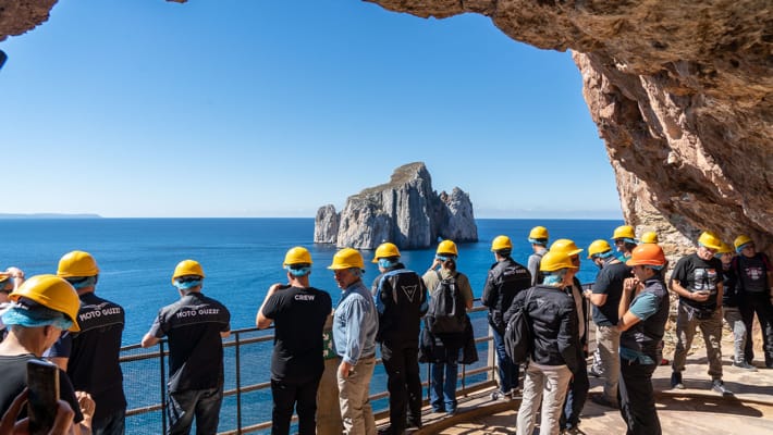 Queste sono solo le sensazioni della prima di quattro magnifiche giornate che ci porteranno alla scoperta di strade, sapori e panorami indimenticabili. Un’immersione a 360° nel mondo Moto Guzzi e nelle bellezze della Sardegna ancora più coinvolgente delle precedenti edizioni, che ci accompagnerà per mano sulle costiere mozzafiato di Villasimius, tra le curve in successione sulle montagne tra Ballao e Senorbì, poi nei cunicoli delle spettacolari Miniere di Porto Flavia, autentico monumento all’archeologia industriale, così come nella spettacolare passeggiata panoramica di Nebida, dalle cui terrazze vertiginose si gode di una vista privilegiata sul Pan Di Zucchero. Giunti a sabato sera, il conta km segna oltre 650; la domenica mattina ci regalerà un programma culturale defaticante, la visita guidata all’Antica Città di Nora: prima città fenicia in Sardegna (VIII secolo a.C.), sviluppatasi pienamente sotto il dominio punico, conquistata poi dai Romani nel 238 a.C. che ne faranno caput viae, chilometro zero di tutte le strade della Sardegna. Un finale particolarmente simbolico, per noi che queste strade le abbiamo tanto apprezzate e amate in sella alle Moto Guzzi”.