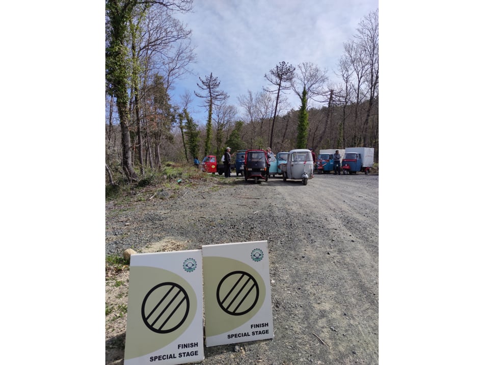 GIORNO 2, DOMENICA 2 APRILE. Domenica, una volta registrati gli ultimi Apisti arrivati e dopo un briefing per spiegare ai partecipanti il percorso da affrontare, la colonna si è mossa lungo un breve trasferimento su asfalto per andare fino alla partenza della Prova Speciale del Rally di Sanremo: la famosa “Speciale di Santa Luce” dove, negli anni d’oro del rallismo, Campioni e Case Costruttrici si davano battaglia per aggiudicarsi la Corsa Mondiale.