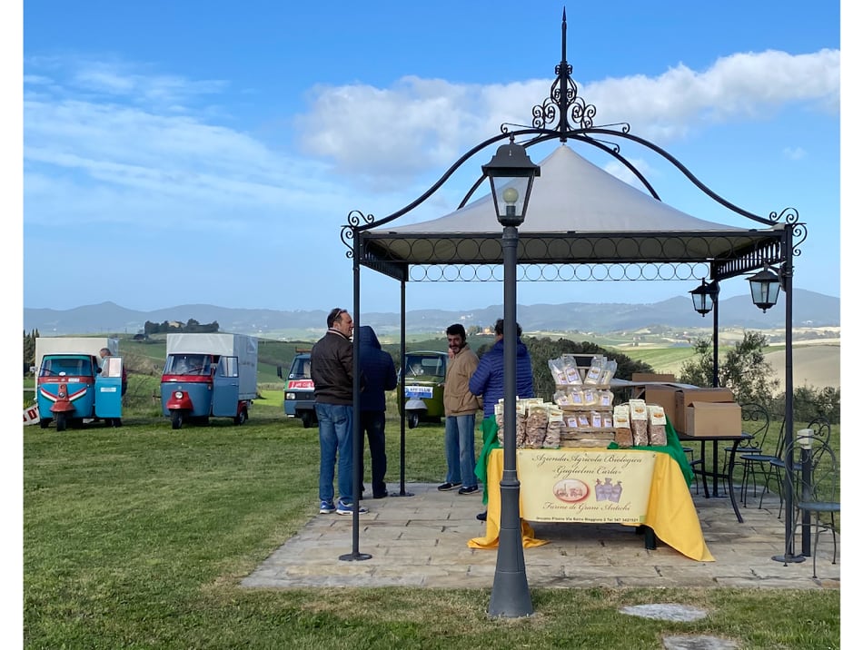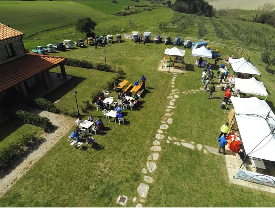 Il sabato è stato dedicato poi alla scoperta del territorio, della location dell’Ape Village presso il resort Poggio della Pieve pronto ad accogliere gli ‘Apisti’ (Ape fans), e dove i produttori della rete di imprese Colli Pisani ha allestito una esposizione di prodotti tipici e stand enogastronomici; a pranzo, i radunisti hanno potuto assaggiare specialità tipiche Toscane, tra salumi, formaggi e buon vino, en plein air immersi nella natura.