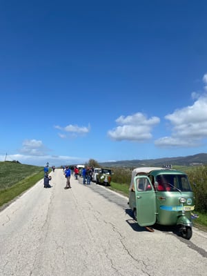 Racconta Marco Manzoli (Segretario Generale VWC): “In due giorni, le piccole, lente ma infaticabili Ape son andate alla scoperta turistica ed enogastronomica delle Colline Pisane Orcianesi. Collezionisti di Ape provenienti da dieci città d’Italia (Genova, Verona, Torino e Ariccia le più distanti, fuori regione Toscana), con un tocco di internazionalità rappresentato dalle delegazioni di due Club tedeschi: quello di Schwabach e quello di Norimberga, partecipanti con tre agguerritissime Ape (una AC4, una MP 501 e una 50).