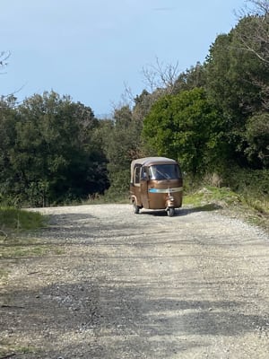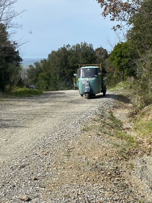 Dopo pranzo la colonna di Ape ha fatto rotta verso il lago di Santa Luce, alveo artificiale diventata oasi della LIPU per la nidificazione degli uccelli migratori. Tutti gli Ape in colonna dietro il ‘fratello maggiore’ Piaggio Porter MP6 guidato dagli amici Michele e Giorgio del Concessionario Piaggio Motorteam di Pisa che hanno coadiuvato attivamente lo staff degli Organizzatori per tutto il giorno. Dopo le immancabili foto ricordo, le nostre inarrestabili Ape hanno puntato una facile strada bianca in mezzo a tipici pini marittimi che, dopo qualche chilometro, li ha portati ad assaggiare altre prelibatezze dell’agricoltura locale alle Cantine Moscardini.