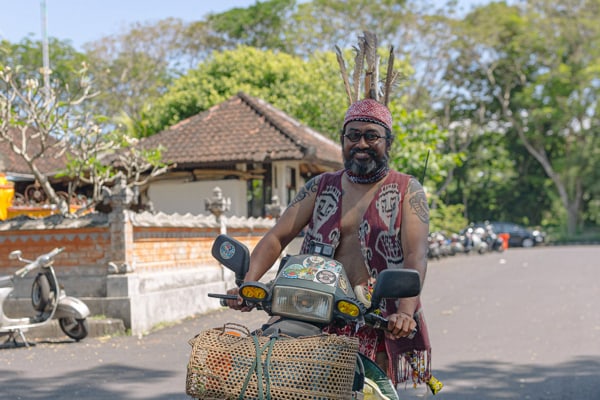 Mio padre guida la Vespa da quando aveva 25 anni, e mi ha tramandato la sua Vespa nel 2003. Il mio primo viaggio su strada a Bali è stato nel 2004 utilizzando una Vespa VBB del 1964, e ora sono felice di chiamare Bali la mia casa. Ho realizzato un racconto fotografico di come la community si è riunita per gli eventi dei Vespa World Days 2022, e alcuni ritratti dei motociclisti e delle loro Vespa”.