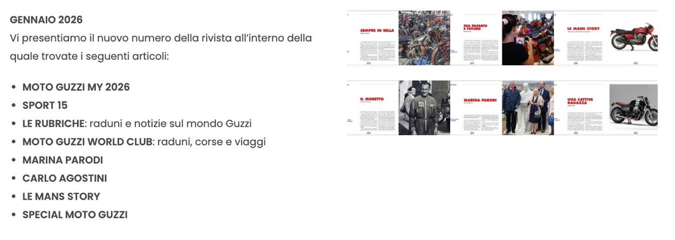 Marzo (G.T.) – Bicilindrica-La Rivista dei Guzzistiè pubblicata da ben 25 anni. Realizzata con cura, in originale formato 24x22 cm, è collezionata dai lettori più fedeli ed è una scoperta per i bikers più giovani. Lettori che apprezzano la sensazione di sfogliare con calma una rivista cartacea, distintiva e di qualità, dalla carta alle immagini, e ricca di articoli (in italiano e in inglese). Tra attualità e tradizione, motociclette di ieri e di oggi, eventi, personaggi, special bikes. E ancora, raduni, tecnica, prove. Tutto quanto è espressione della passione per la moto italiana, apprezzata nel mondo, che dura da 105 anni: e prodotta, sempre e solo, sin dalla sua nascita (marzo 1921), nello storico stabilimento di Mandello del Lario, che quest’anno si rivelerà completamente rinnovato nel ‘Grand Opening’ (4 settembre 2026, Giornate Mondiali Guzzi: https://www.motoguzzi.com/it_IT/la-moto-guzzi-del-futuro/).
