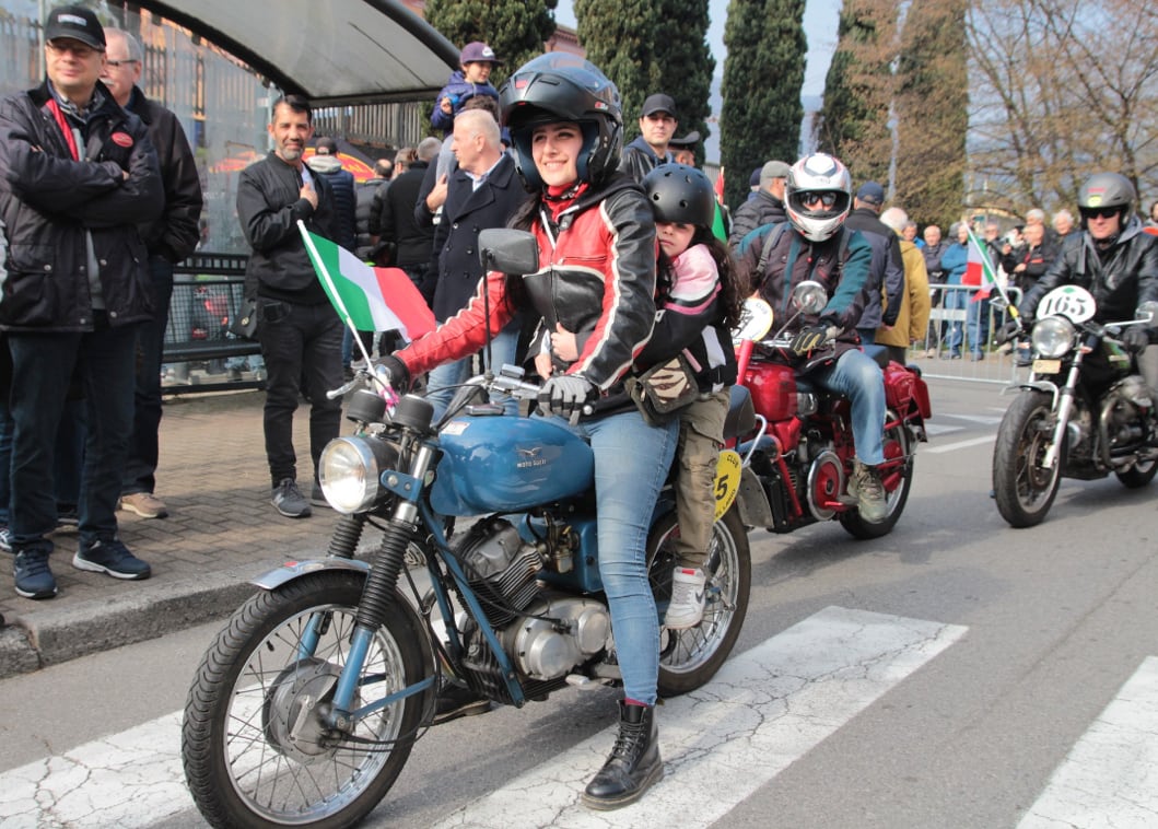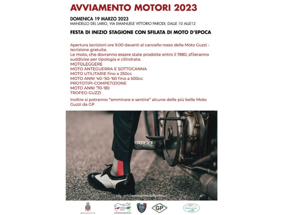 20 marzo 2023 (G.T.) – È l’evento che segna ogni anno l’apertura della stagione Guzzista, con il tradizionale rito dell’avviamento dei motori: si è svolto la mattina di domenica 19 marzo, nel piazzale antistante lo stabilimento Moto Guzzi di via Parodi, a Mandello del Lario; numerosi appassionati di tre generazioni, dai nonni ai nipoti, hanno applaudito la sfilata di un centinaio di modelli d’epoca, festeggiando anche il 102° compleanno di Moto Guzzi (“Società anonima Moto Guzzi”, costituita il 15 marzo 1921).