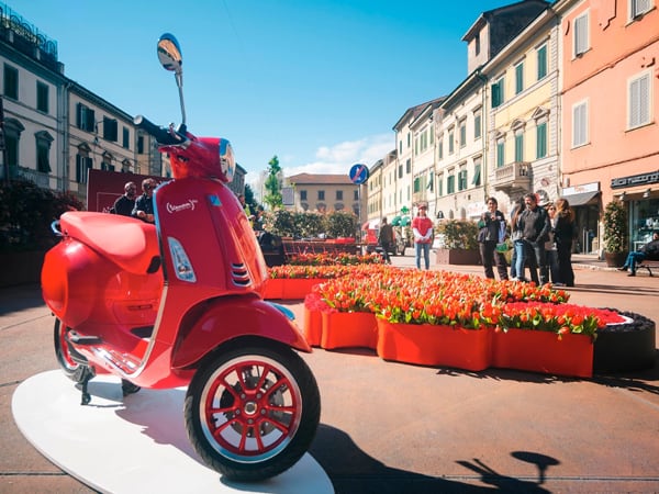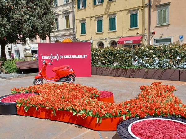 Il numeroso pubblico ha aderito al progetto di charity “Vespa in Fiore”: tulipani a formare la silhouette di Vespa – una vera opera d’arte pop up – con il ricavato dalla vendita dei fiori destinato a (RED); e in esposizione la nuova (Vespa Elettrica) RED.