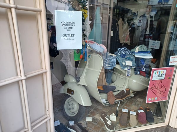 E ancora: le vetrine dei negozi del centro cittadino abbellite con le locandine del Vespa Day; aspiranti Vespisti che s’informavano su modelli e cilindrate allo stand del dealer Motorteam di Pisa, accolti dal responsabile Matteo Braccialini. E poi, concorso di eleganza, con drivers in look coordinato con l’epoca della propria Vespa (si è visto anche un bersagliere in Vespa; coppie di ogni generazione, e tanti ‘personaggi’ originali su modelli nuovi e vintage); esposizione di modelli pregiati e rari; serata Musica & Festa, anni ’70 e ’80 a cura di Radio Bruno (rimandato, invece, per pioggia il previsto concerto serale di DB DAYS BAND).