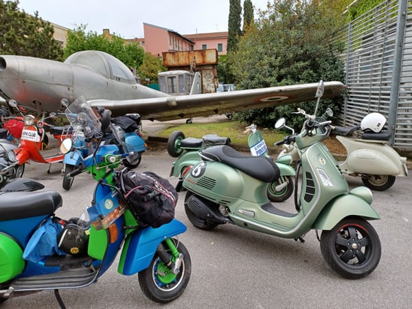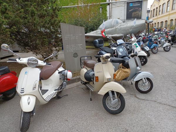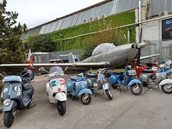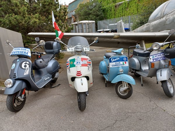 Poi, tutti con i sorrisi in su per le riprese aeree effettuate con un drone. E via, di nuovo in sella, per raggiungere il vicino Museo Piaggio per godersi in anteprima la nuova mostra, dedicata al longevo rapporto tra Vespa e musica. E ancora, inaugurazione – proprio accanto all’ingresso del Museo – della nuova sede del Vespa Club Pontedera, intitolata a Giuseppe Stefanelli, con partecipazione di istituzioni e autorità e, tra gli altri, di Mauro Calestrini, presidente del Vespa World Club, di Eugenio Leone, Vice Presidente dell’associazione Città dei Motori, di Riccardo Costagliola, Presidente della Fondazione Piaggio, e di Giuseppe Cau, 94 anni e grinta da vendere, il Vespista più longevo e noto a livello internazionale.