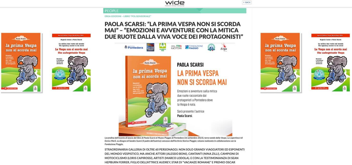 Il sodalizio tra i due club nasce anche grazie al libro “La Vespa non si scorda mai - The unforgettable Vespa”, pubblicato in italiano e inglese, che Paola Scarsi, giornalista, scrittrice e fotografa italiana ha scritto (insieme con Eugenio Leone) in occasione del Vespa World Days di Pontedera del 2024. Come il suo precedente libro dedicato alla Vespa, anche questo ha raccolto le testimonianze di appassionati e di grandi viaggiatori evidenziando maggiormente come la Vespa sia vissuta nel mondo.
