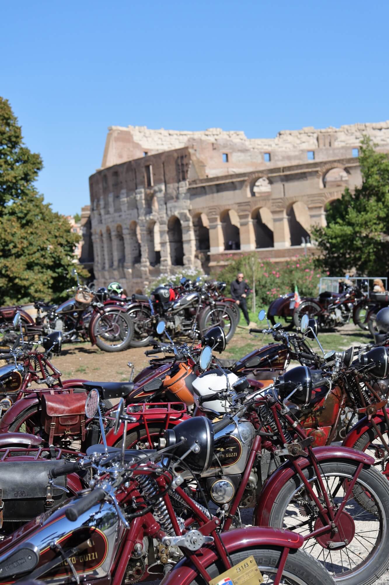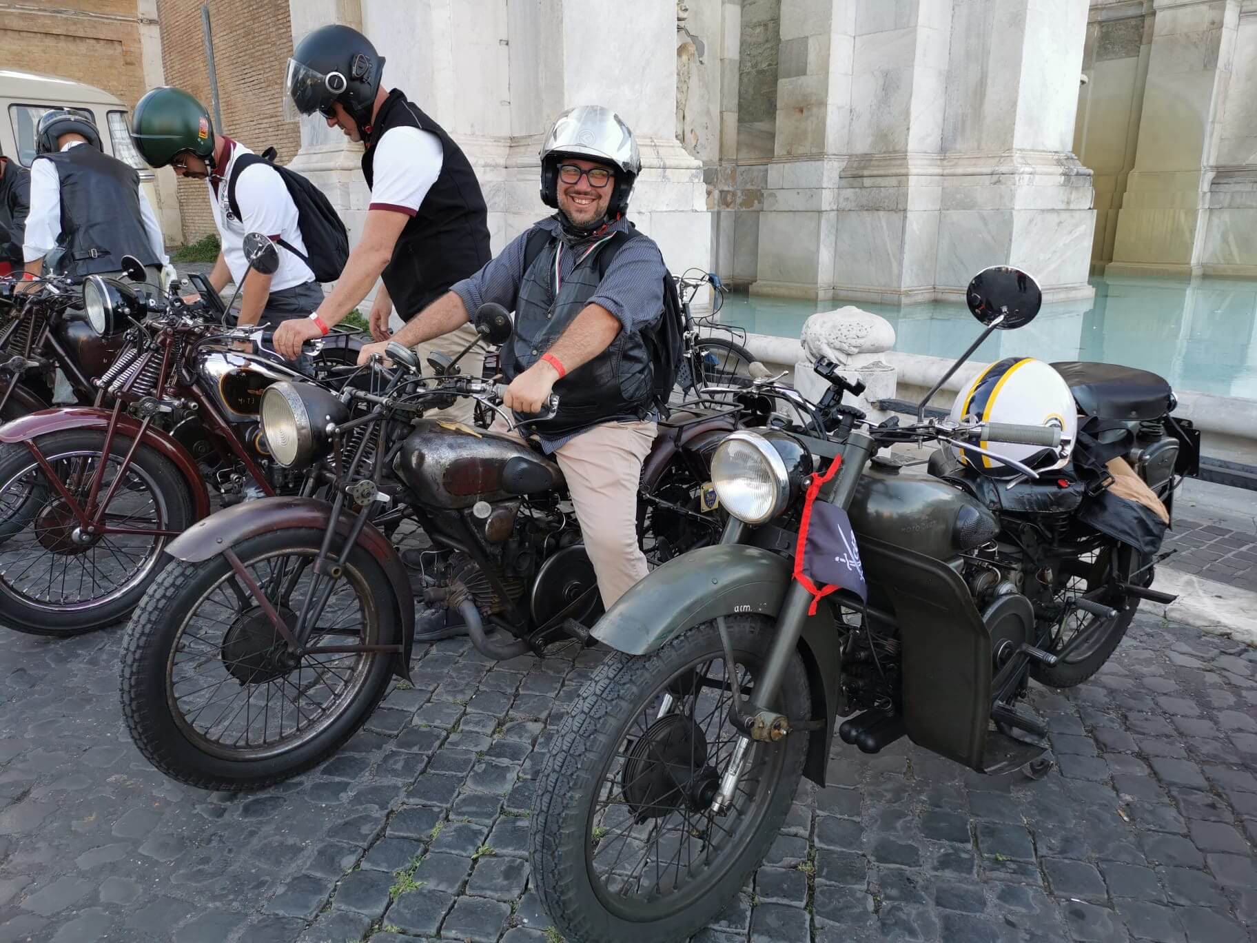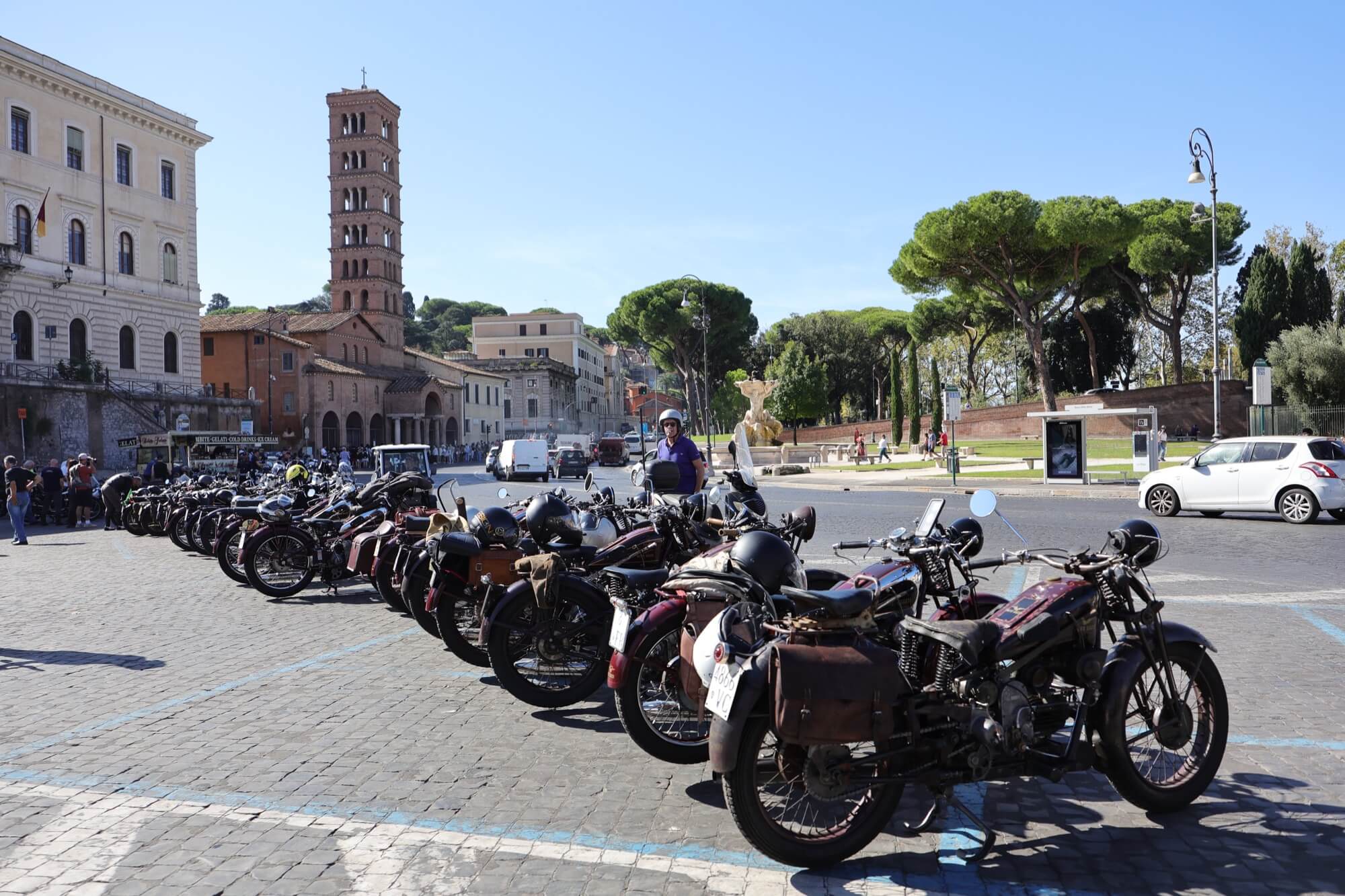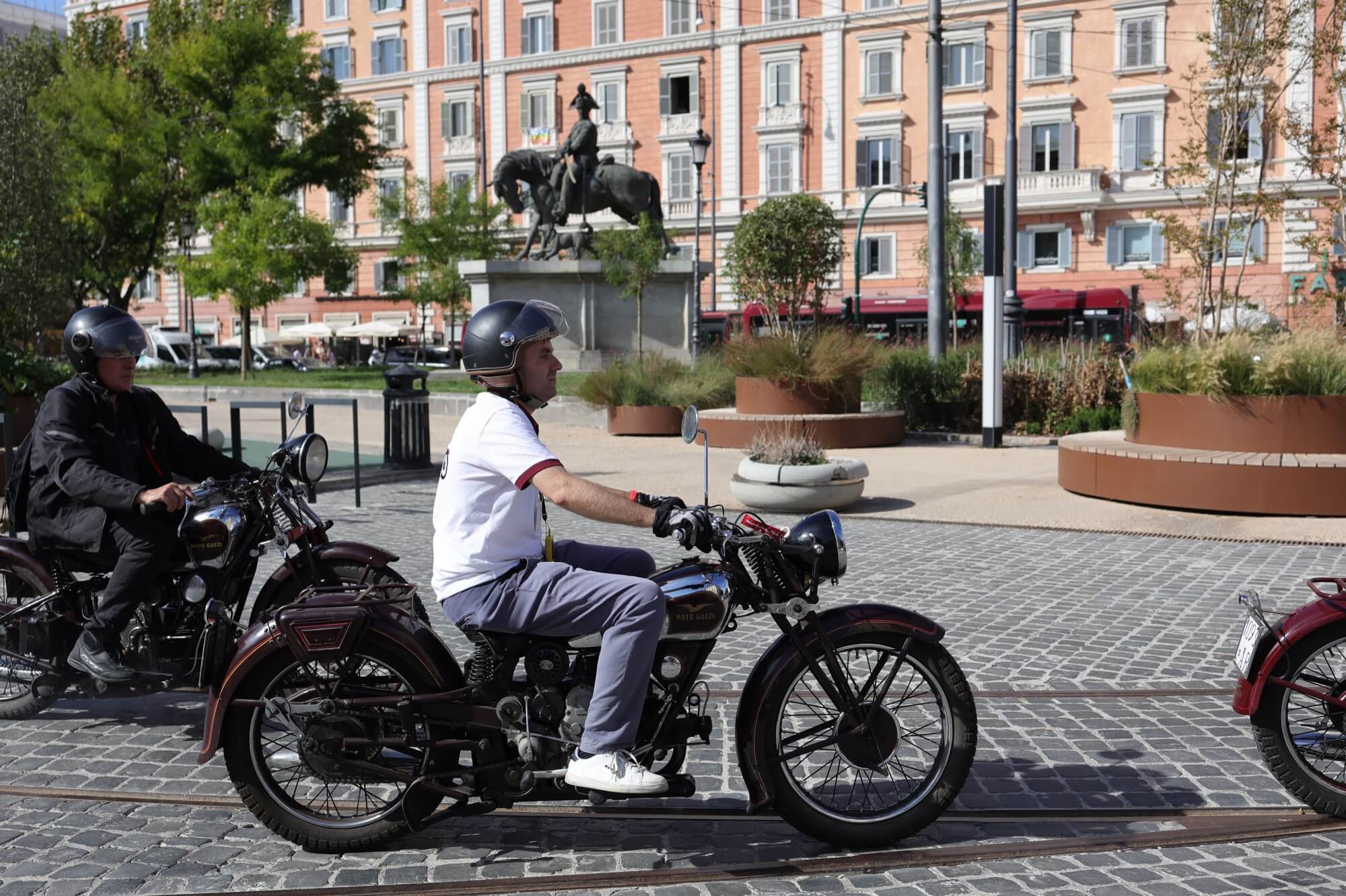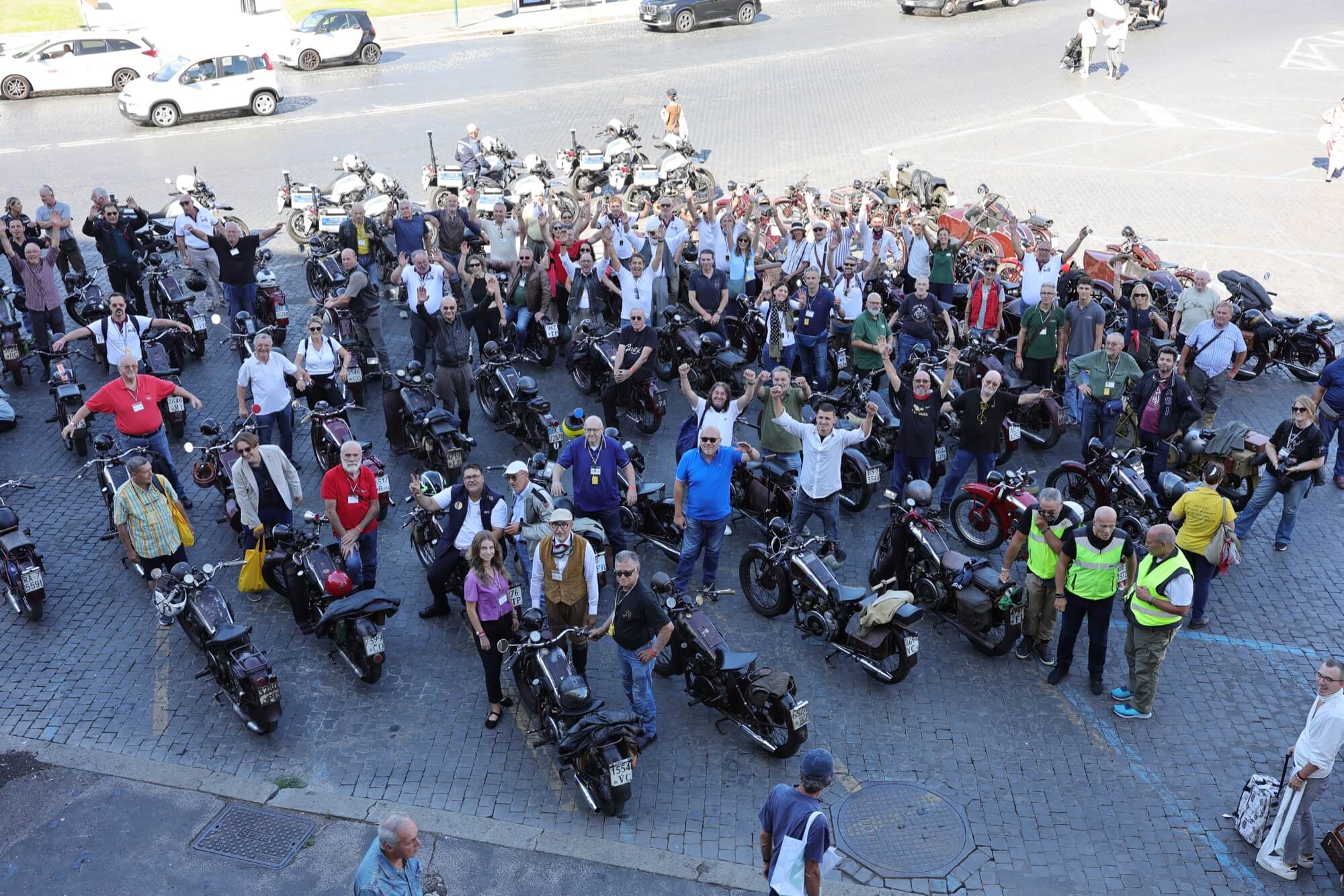Grandioso il programma messo a punto dai tecnici della scuderia romana «La tartaruga»: non solo una full immersion nella latinità e nelle antichità classiche romane, ma anche l'emozione di un percorso guidato dalla polizia locale di «Roma Capitale» in motocicletta che hanno permesso agli oltre 100 partecipanti di godere delle bellezze classiche, architettoniche e storiche della Capitale. Nell'anno del Giubileo non era nemmeno ipotizzabile l'idea di potersi affacciare su piazza San Pietro con le moto. Ma i contatti avviati da mesi da parte dell'organizzazione hanno permesso non solo una visita nella Basilica di Sant'Agostino, nel cuore del Vaticano, ma addirittura l’Autorità Pontificia ha permesso il transito e una lunga sosta del corteo di due ruote storiche in via della Conciliazione, con esposizione delle oltre 100 moto ai margini di Piazza San Pietro. Il cuore della cristianità, tra centinaia di migliaia di fedeli che hanno partecipato sabato all'udienza di Papa Leone XIV, si è riempito dei mitici rombi dei monocilindrici di Mandello del Lario.