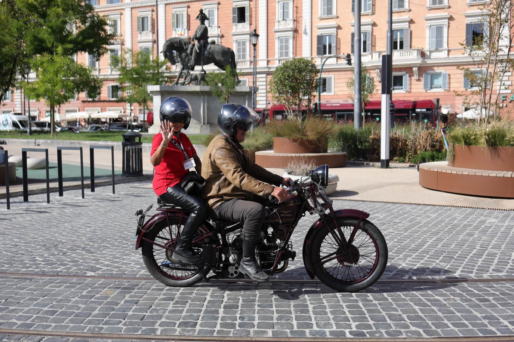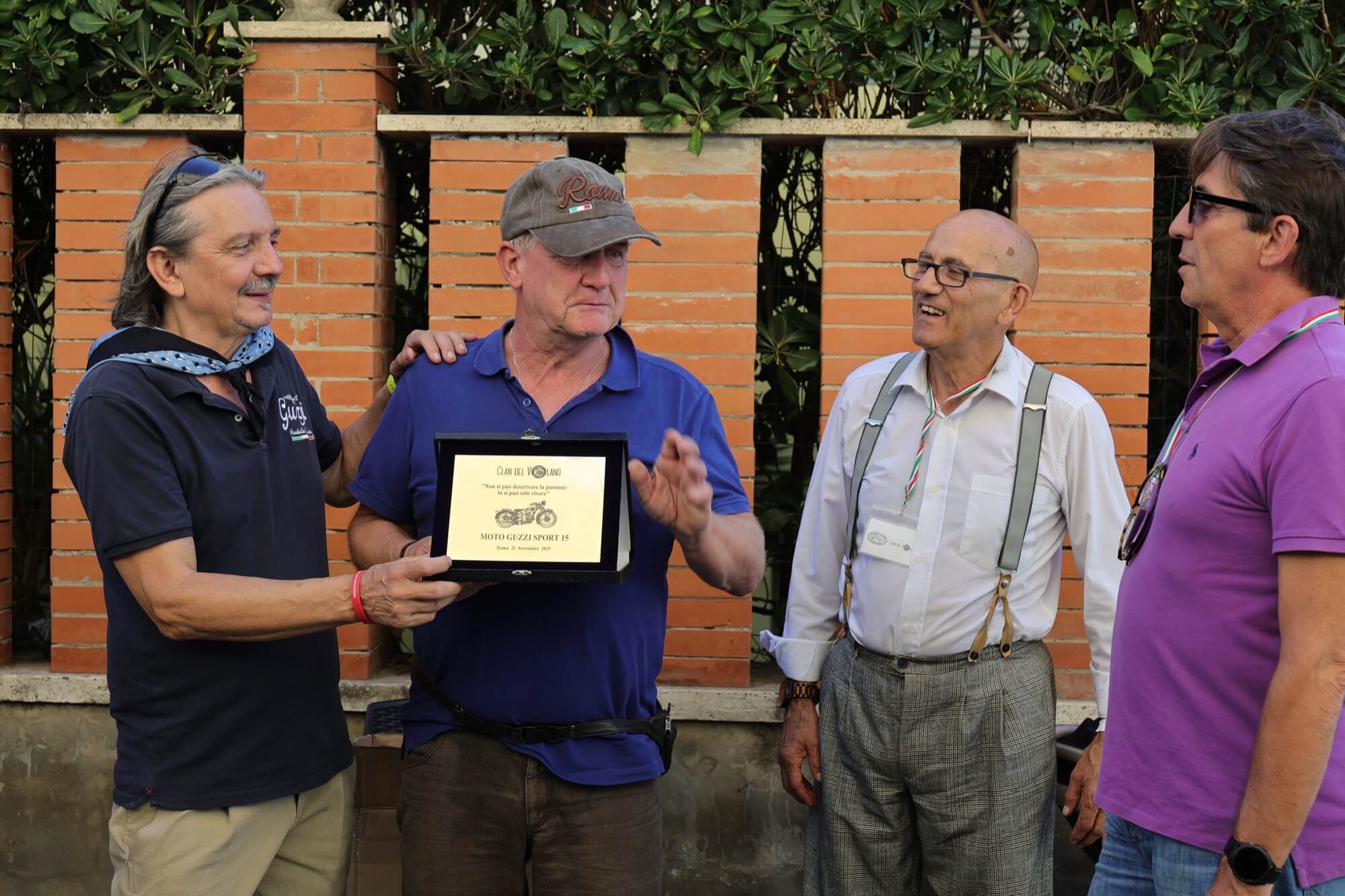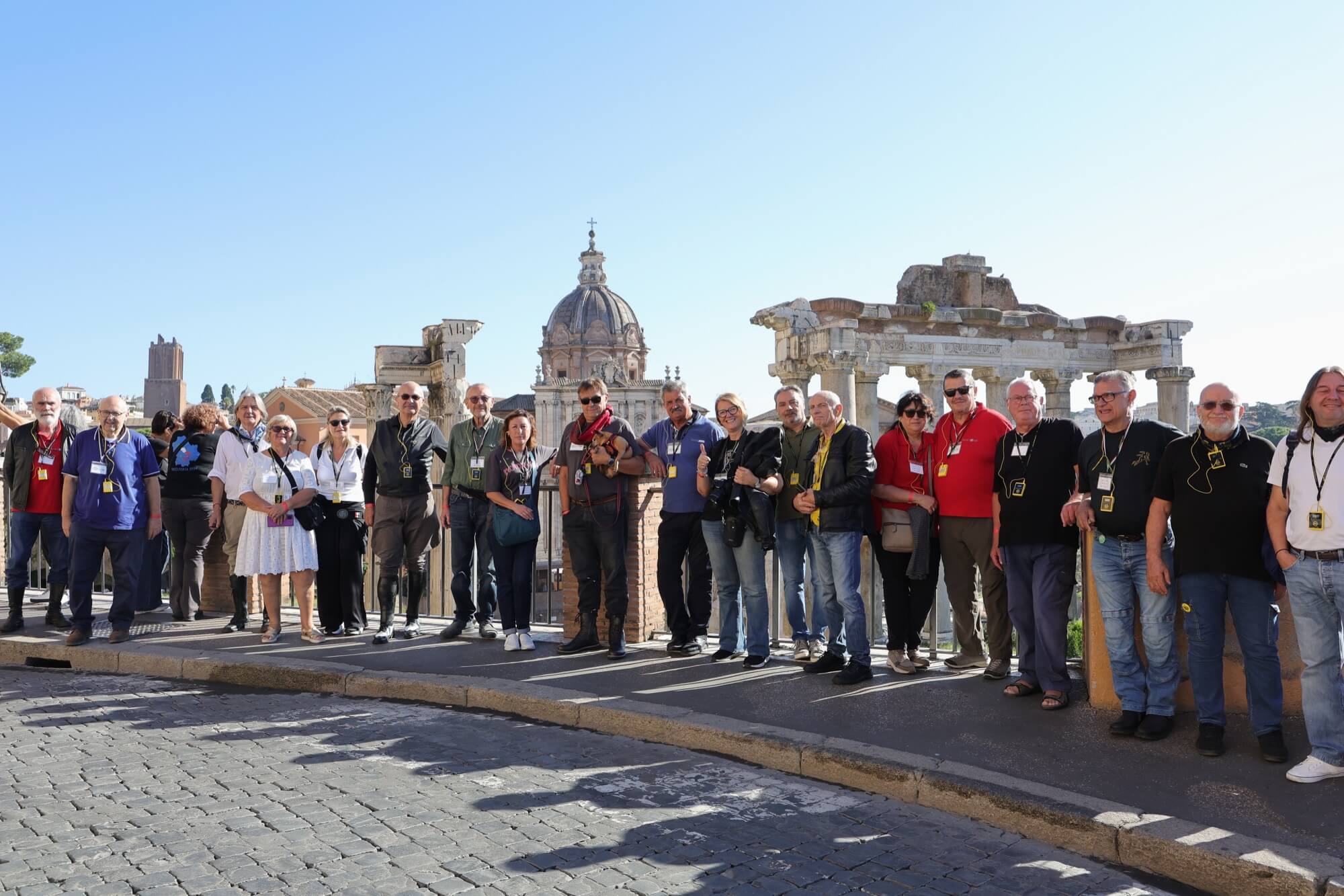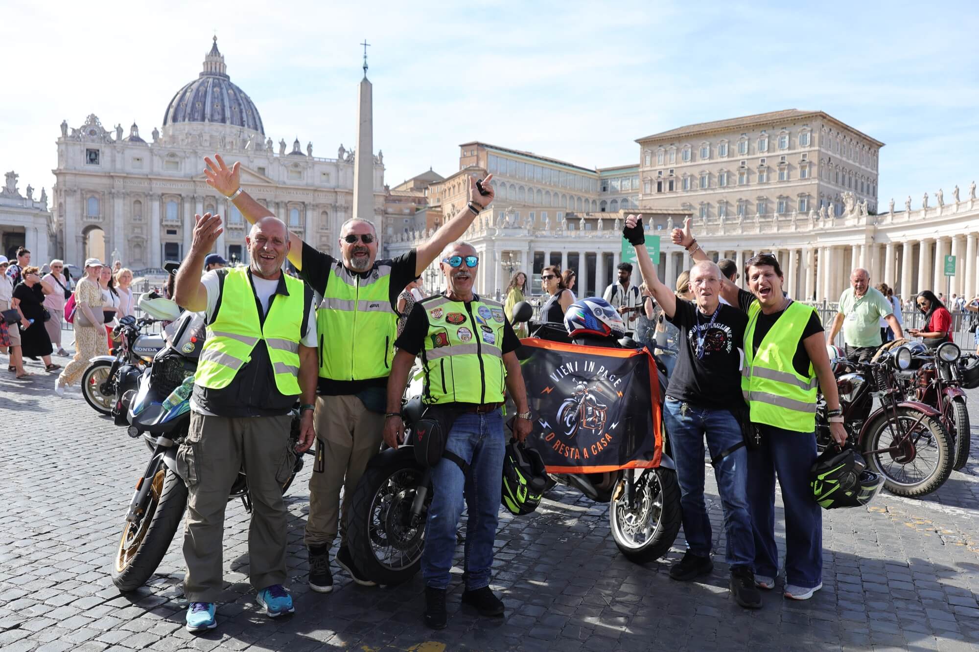 Grandioso il programma messo a punto dai tecnici della scuderia romana «La tartaruga»: non solo una full immersion nella latinità e nelle antichità classiche romane, ma anche l'emozione di un percorso guidato dalla polizia locale di «Roma Capitale» in motocicletta che hanno permesso agli oltre 100 partecipanti di godere delle bellezze classiche, architettoniche e storiche della Capitale. Nell'anno del Giubileo non era nemmeno ipotizzabile l'idea di potersi affacciare su piazza San Pietro con le moto. Ma i contatti avviati da mesi da parte dell'organizzazione hanno permesso non solo una visita nella Basilica di Sant'Agostino, nel cuore del Vaticano, ma addirittura l’Autorità Pontificia ha permesso il transito e una lunga sosta del corteo di due ruote storiche in via della Conciliazione, con esposizione delle oltre 100 moto ai margini di Piazza San Pietro. Il cuore della cristianità, tra centinaia di migliaia di fedeli che hanno partecipato sabato all'udienza di Papa Leone XIV, si è riempito dei mitici rombi dei monocilindrici di Mandello del Lario.