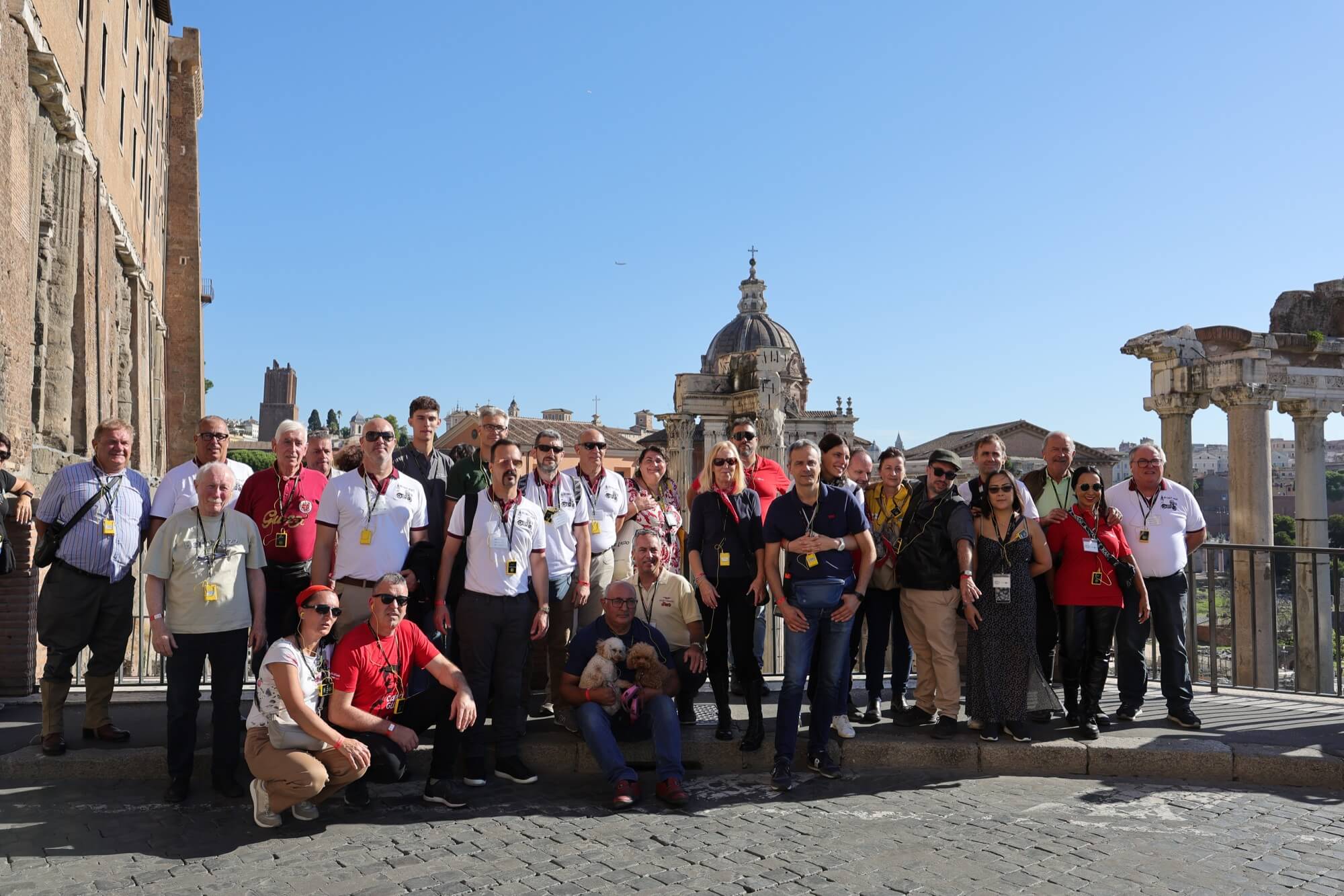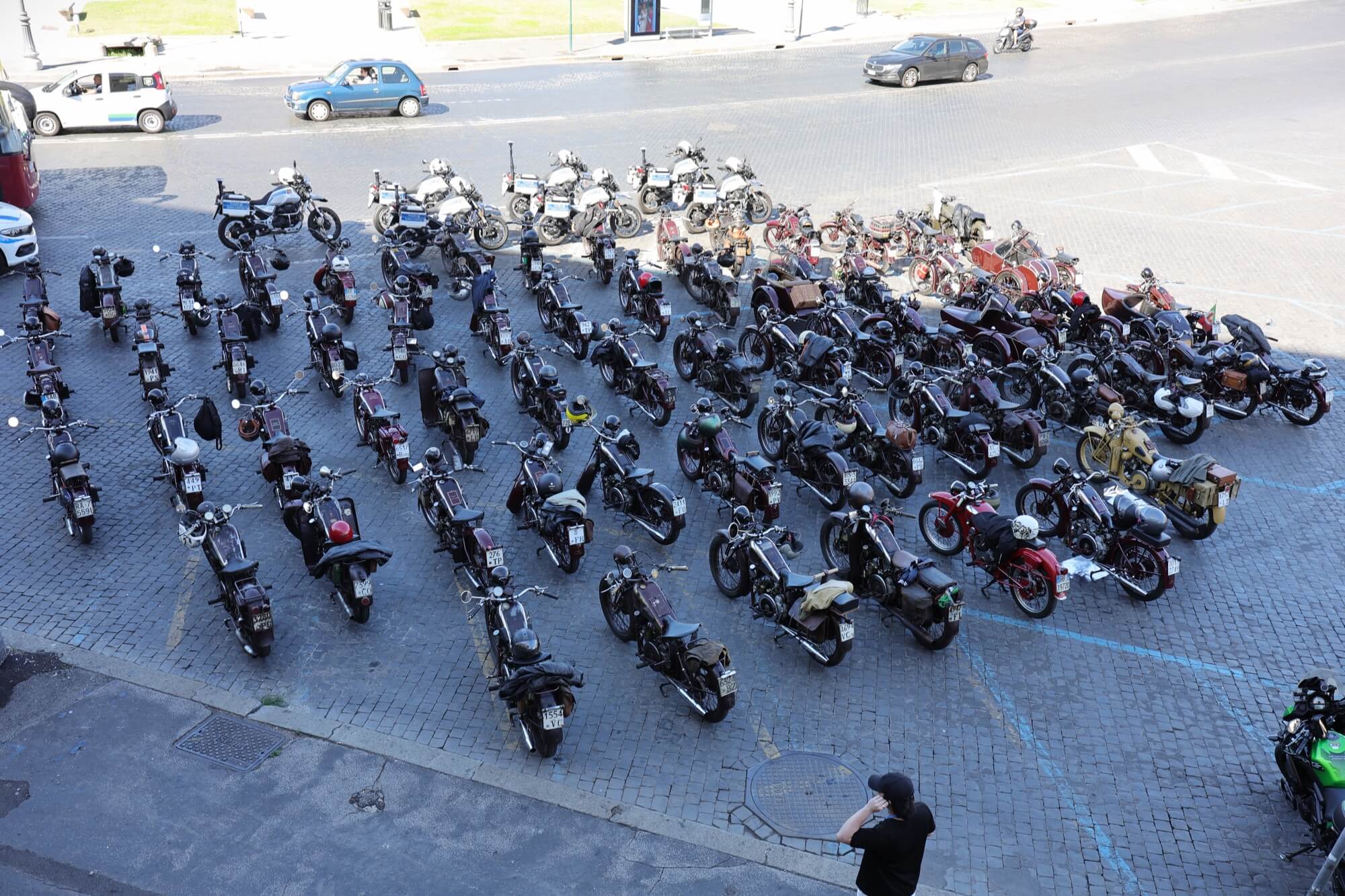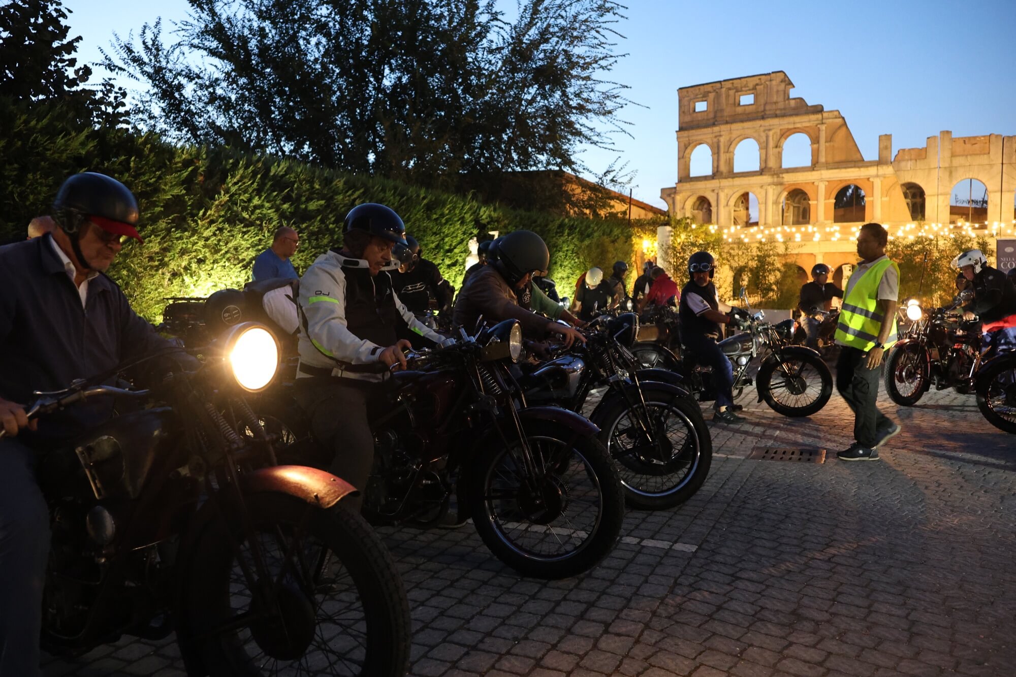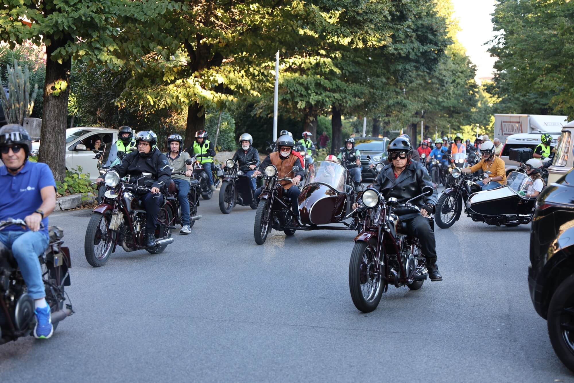 Grandioso il programma messo a punto dai tecnici della scuderia romana «La tartaruga»: non solo una full immersion nella latinità e nelle antichità classiche romane, ma anche l'emozione di un percorso guidato dalla polizia locale di «Roma Capitale» in motocicletta che hanno permesso agli oltre 100 partecipanti di godere delle bellezze classiche, architettoniche e storiche della Capitale. Nell'anno del Giubileo non era nemmeno ipotizzabile l'idea di potersi affacciare su piazza San Pietro con le moto. Ma i contatti avviati da mesi da parte dell'organizzazione hanno permesso non solo una visita nella Basilica di Sant'Agostino, nel cuore del Vaticano, ma addirittura l’Autorità Pontificia ha permesso il transito e una lunga sosta del corteo di due ruote storiche in via della Conciliazione, con esposizione delle oltre 100 moto ai margini di Piazza San Pietro. Il cuore della cristianità, tra centinaia di migliaia di fedeli che hanno partecipato sabato all'udienza di Papa Leone XIV, si è riempito dei mitici rombi dei monocilindrici di Mandello del Lario.