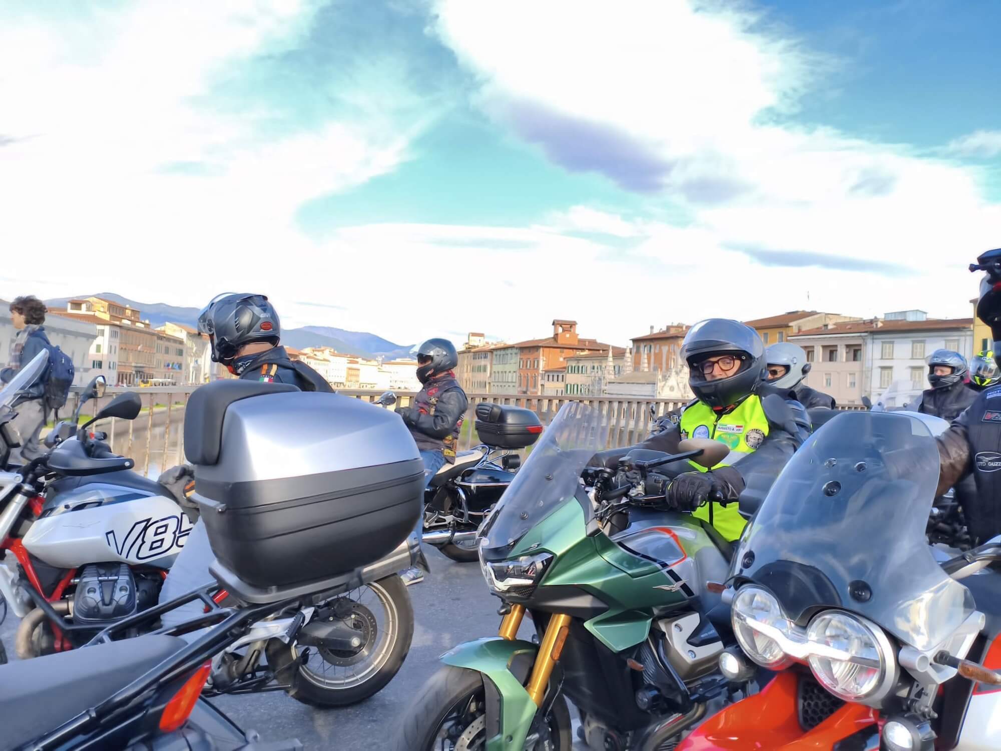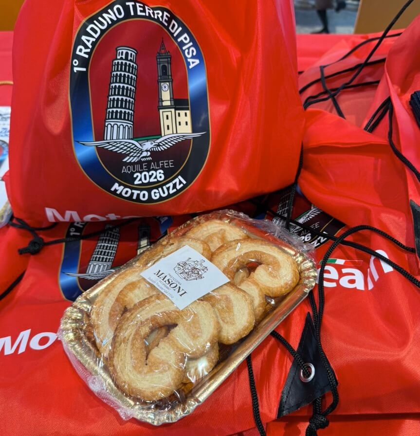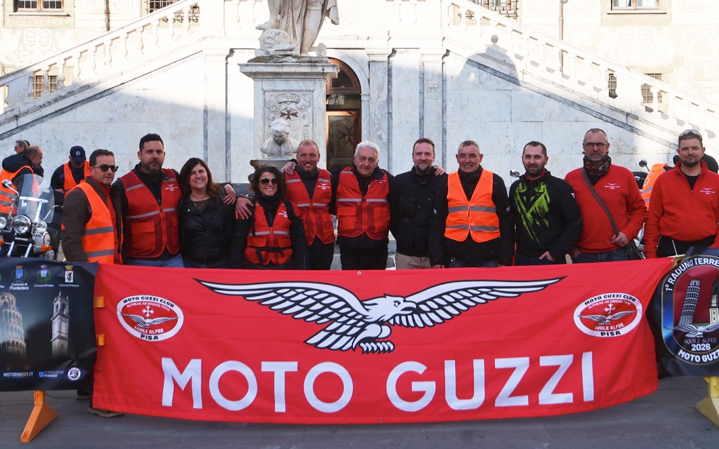 Aprile 2026 (G.T.) – L’entusiasmo e il coraggio di un club di Guzzisti nato meno di un anno fa abbinato ad un team di supporters con grande esperienza nella organizzazione e promozione di eventi motociclistici, e al fascino di un territorio toscano attrattivo e generoso in bellezze culturali e paesaggistiche: è la “formula” vincente che ha decretato il successo del 1° Raduno Moto Guzzi Terre di Pisa (che si è svolto dal 27 al 29 marzo 2026). Evento inserito nel calendario ufficiale del Moto Guzzi World Club, di rilievo nazionale con Guzzisti provenienti da varie regioni italiane, in sella ad oltre 200 Moto Guzzi con trecento partecipanti totali. Ecco come è andata.