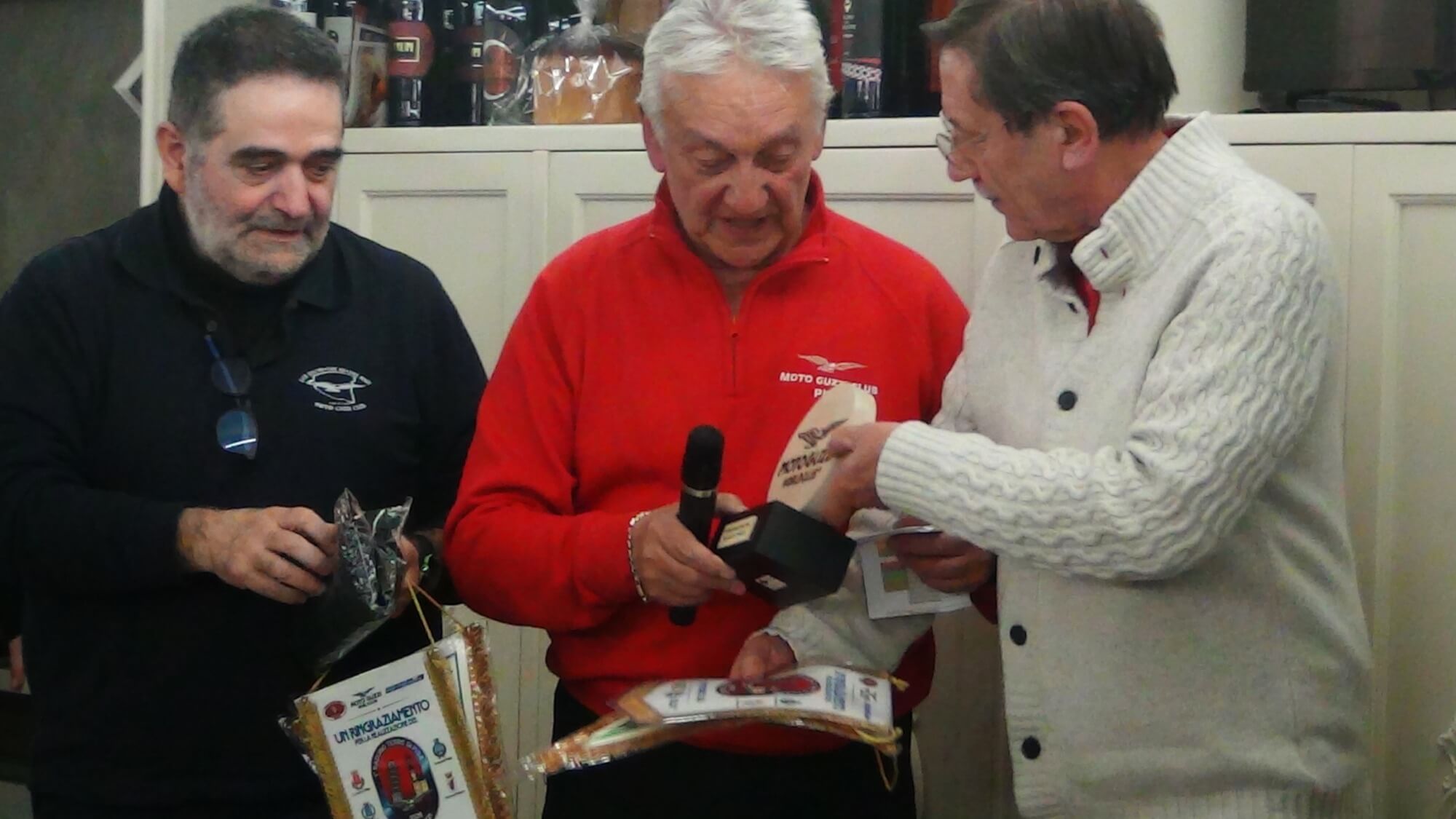 Foto da sx. Giuseppe Marletta al centro con (dx) il Presidente del MGWC Mario Arosio e (sx) il Vicepresidente del MGWC Massimo Vasquez; Marletta con il club Aquile Alfee; con i Guzzisti di Taranto e il loro Presidente Salvatore Nastasia; e con la Presidente del Guzzi Club Benevento, Angelica Porcaro.