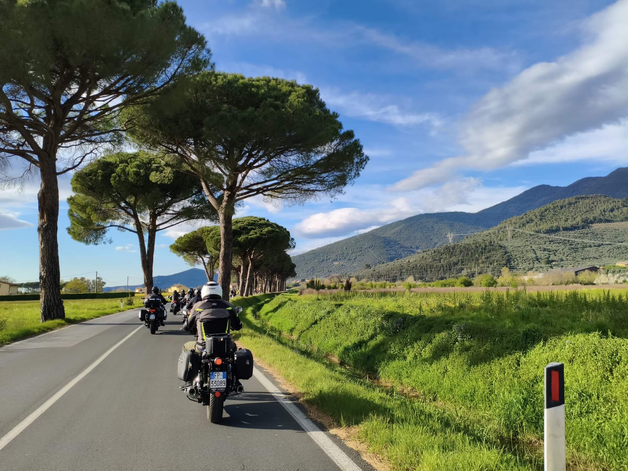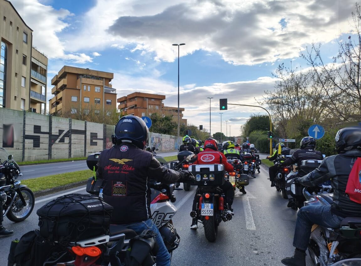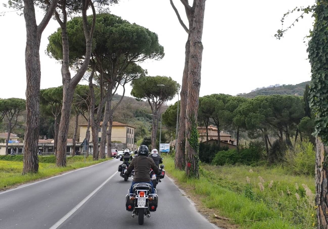 L’ultimo giorno si riparte in direzione Palaia, borgo medioevale che fa da cornice a uno dei momenti più suggestivi: la benedizione dei caschi presso la pieve locale. Un gesto semplice, ma carico di significato per chi vive la moto come passione e stile di vita. Poi ancora un ultimo pranzo insieme, prima dei saluti. Le moto si allontanano, una dopo l’altra, lasciando dietro di sé non solo il suono dei motori, ma il ricordo di qualcosa di autentico.