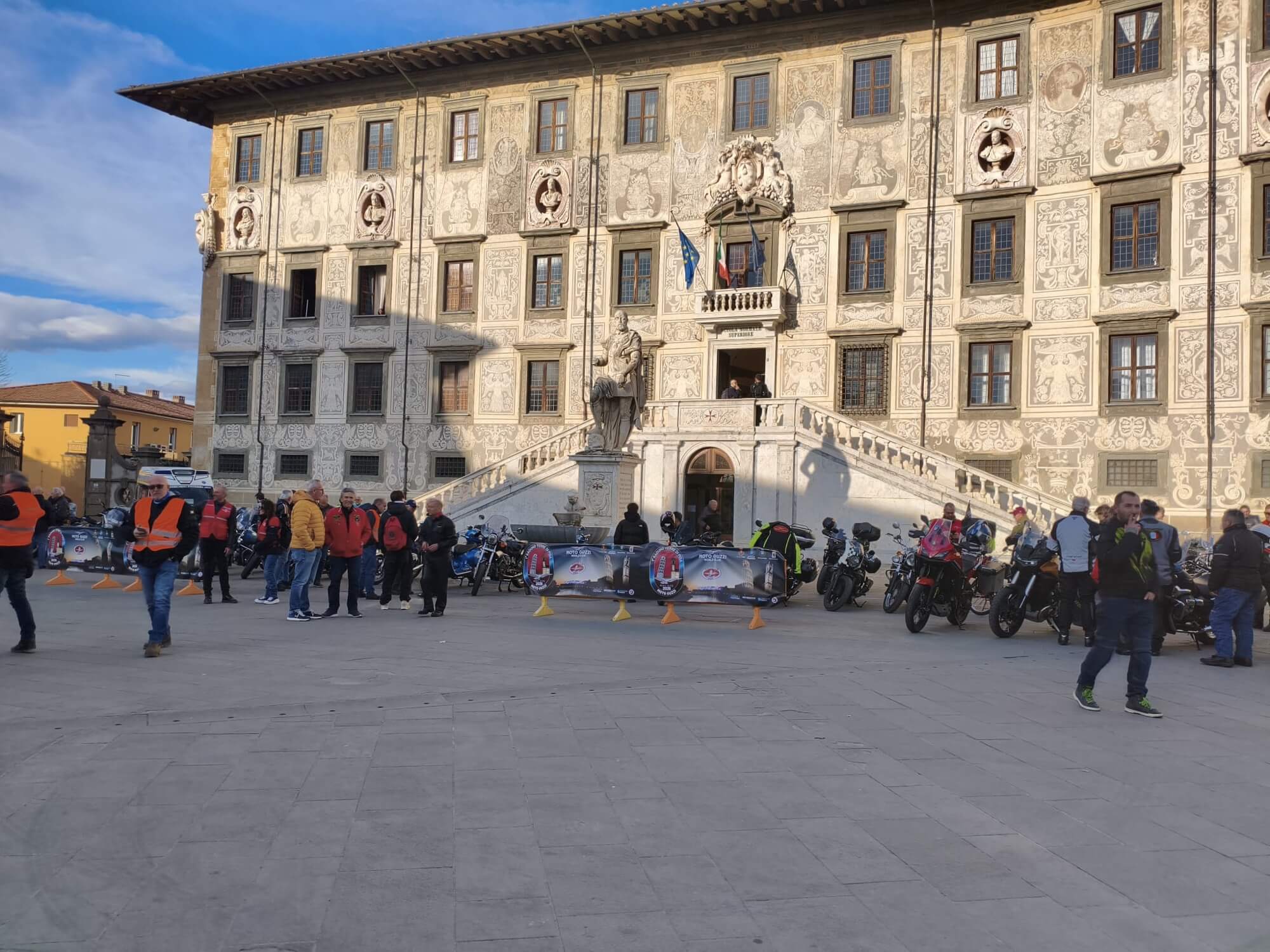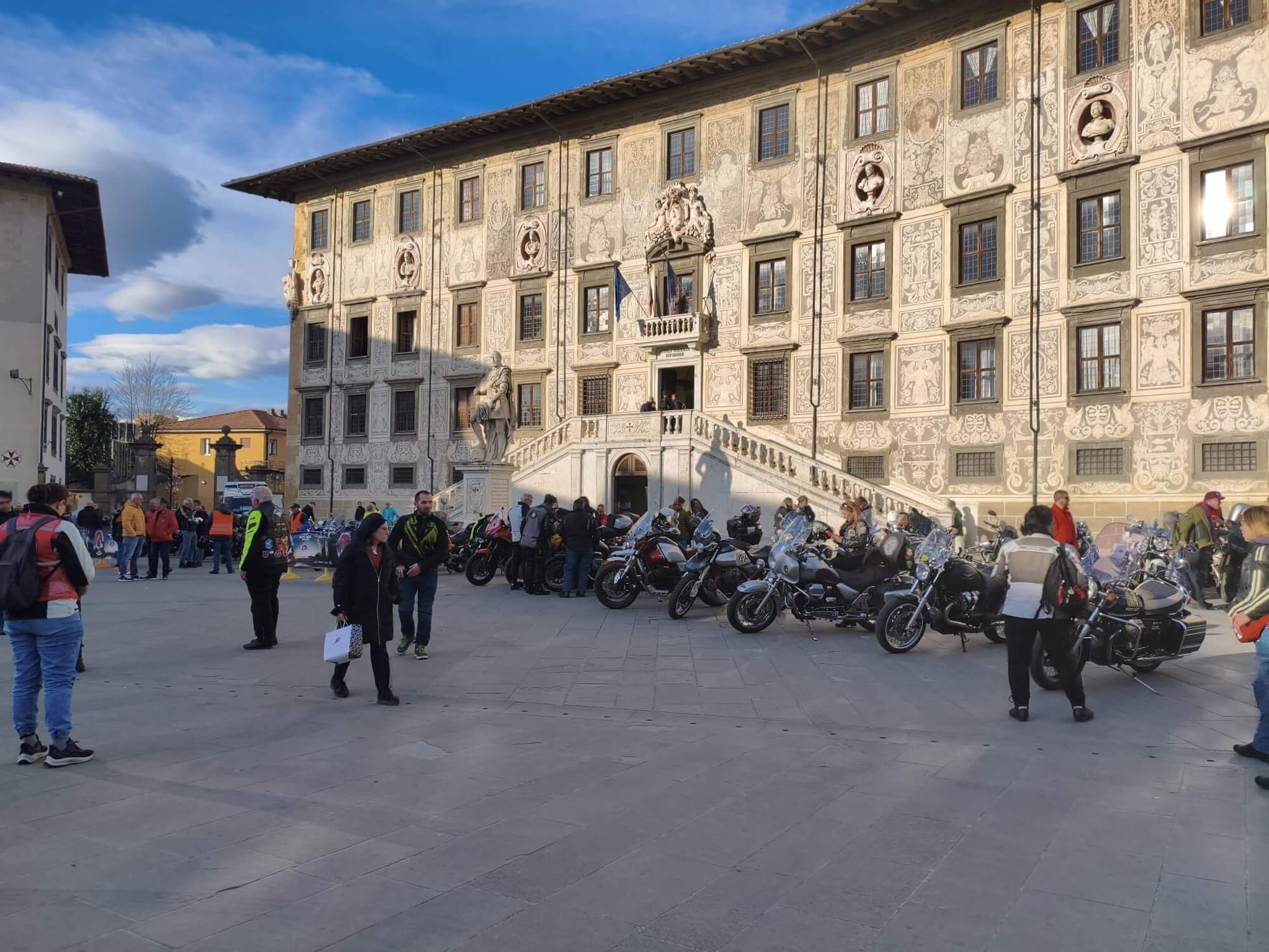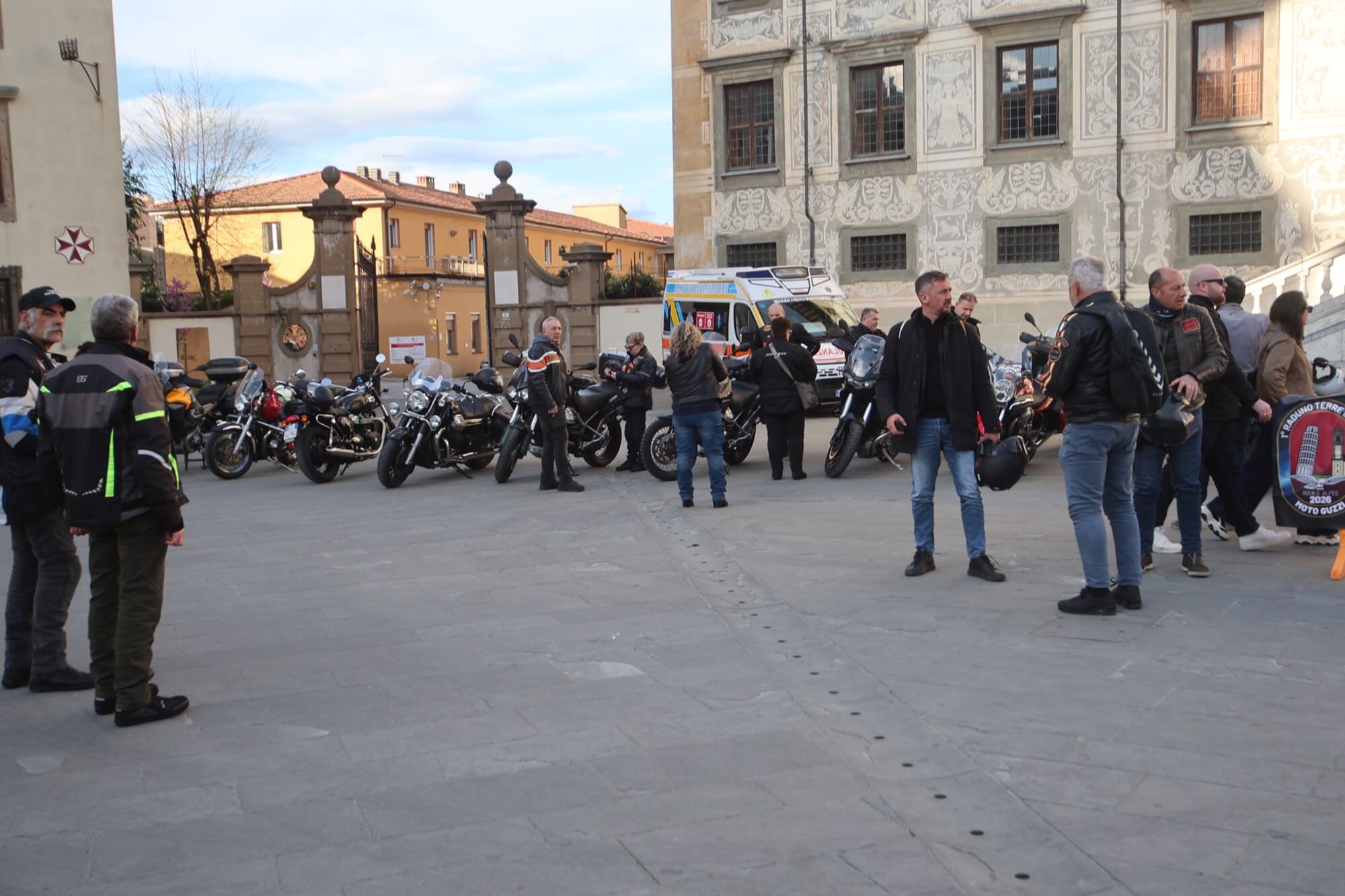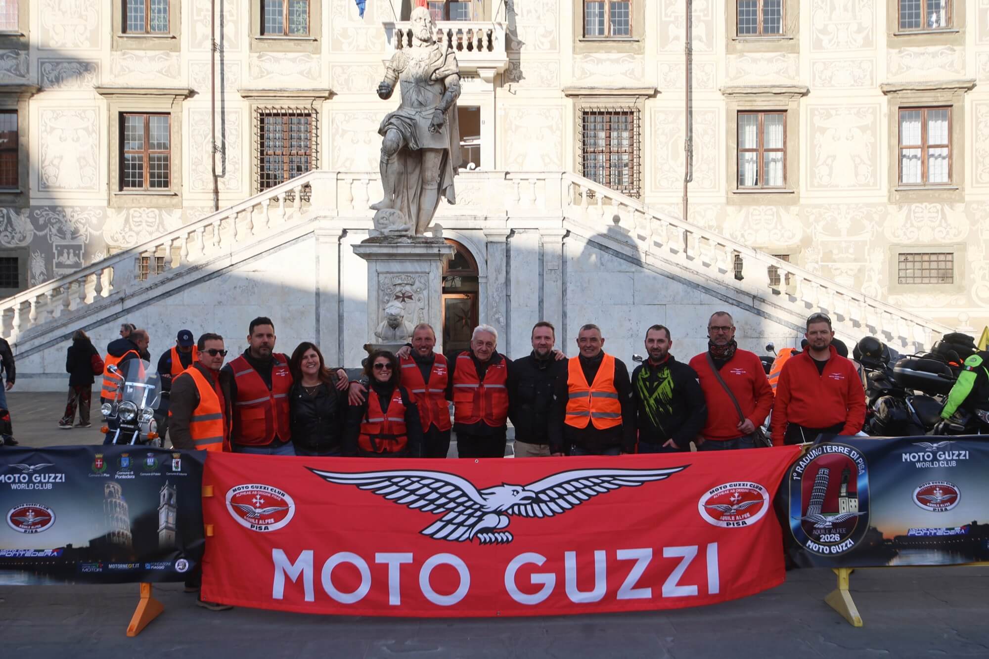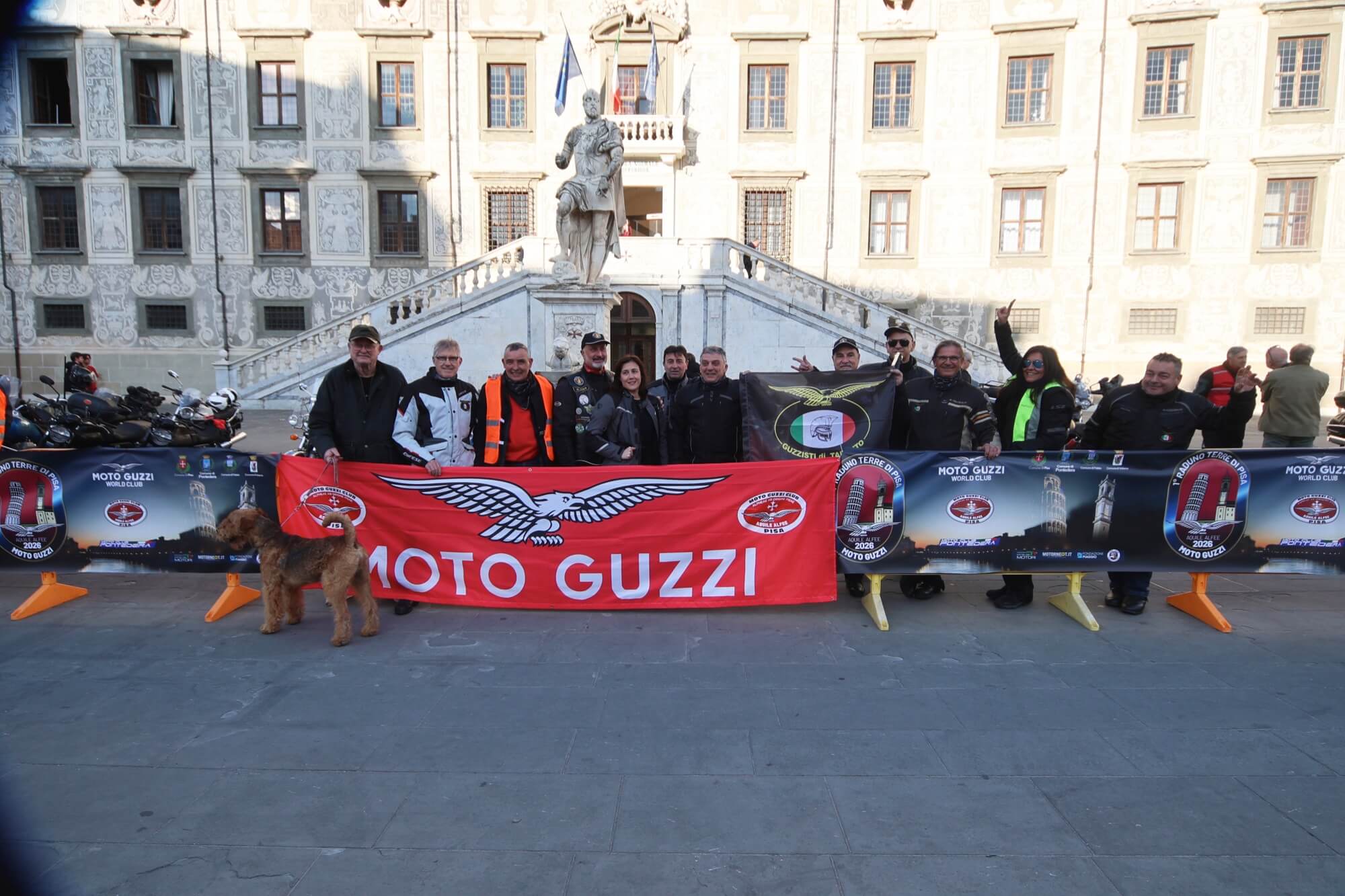 Pisa, Piazza dei Cavalieri, il team del Moto Guzzi Club Pisa-Aquile Alfee.