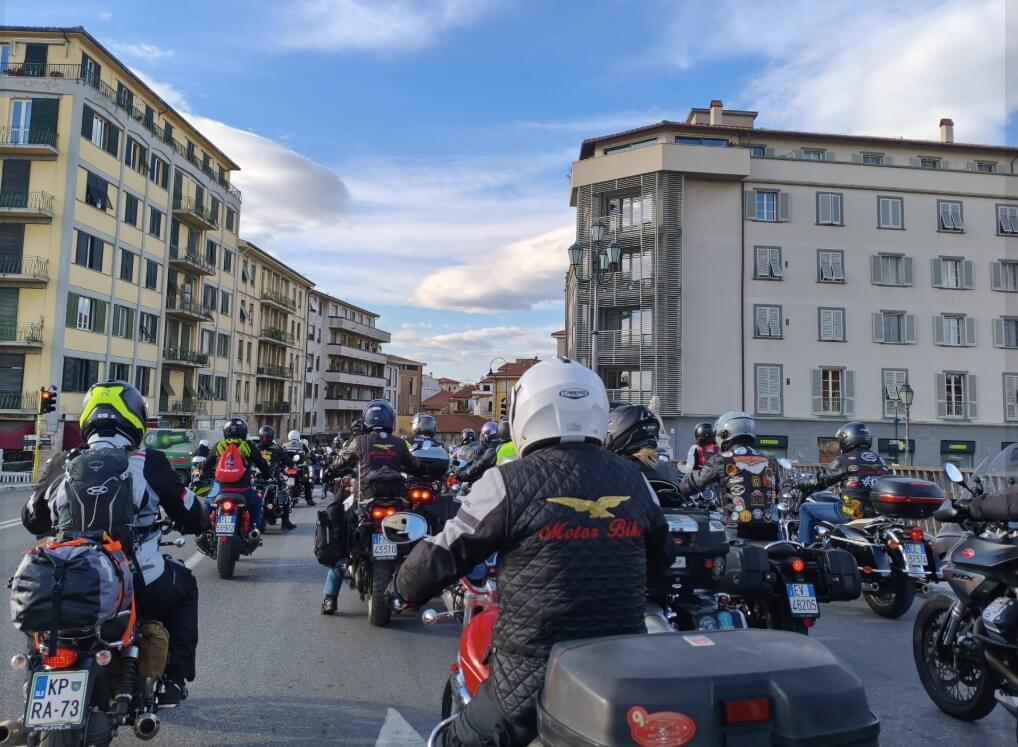 Il momento più spettacolare arriva il sabato: oltre duecento moto accendono i motori e si mettono in marcia verso Volterra. Il lungo serpentone attraversa scenari suggestivi tra Ponsacco, Lari, Casciana Terme e Chianni, regalando immagini difficili da dimenticare.