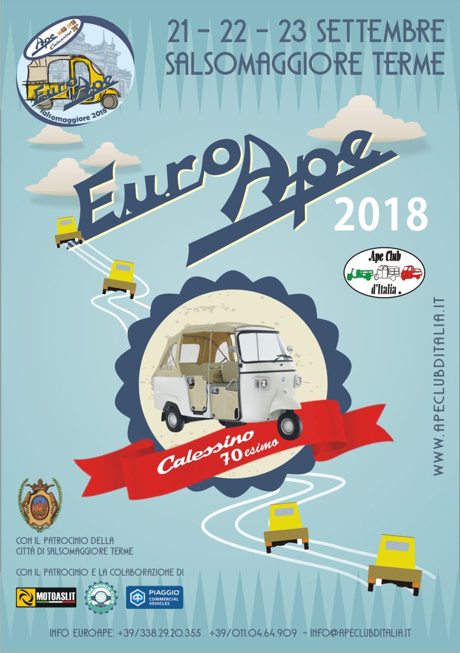 Euro Ape è il raduno che chiama a raccolta, ogni anno gli appassionati dell'Ape e permette a un numero sempre più grande di fans di potersi incontrare, per condividere l’amore per un veicolo simpaticissimo che, in settanta anni di storia, è stato simbolo di operosità, amicizia e vita all’aria aperta fino a diventare oggetto di culto e mezzo da collezione.