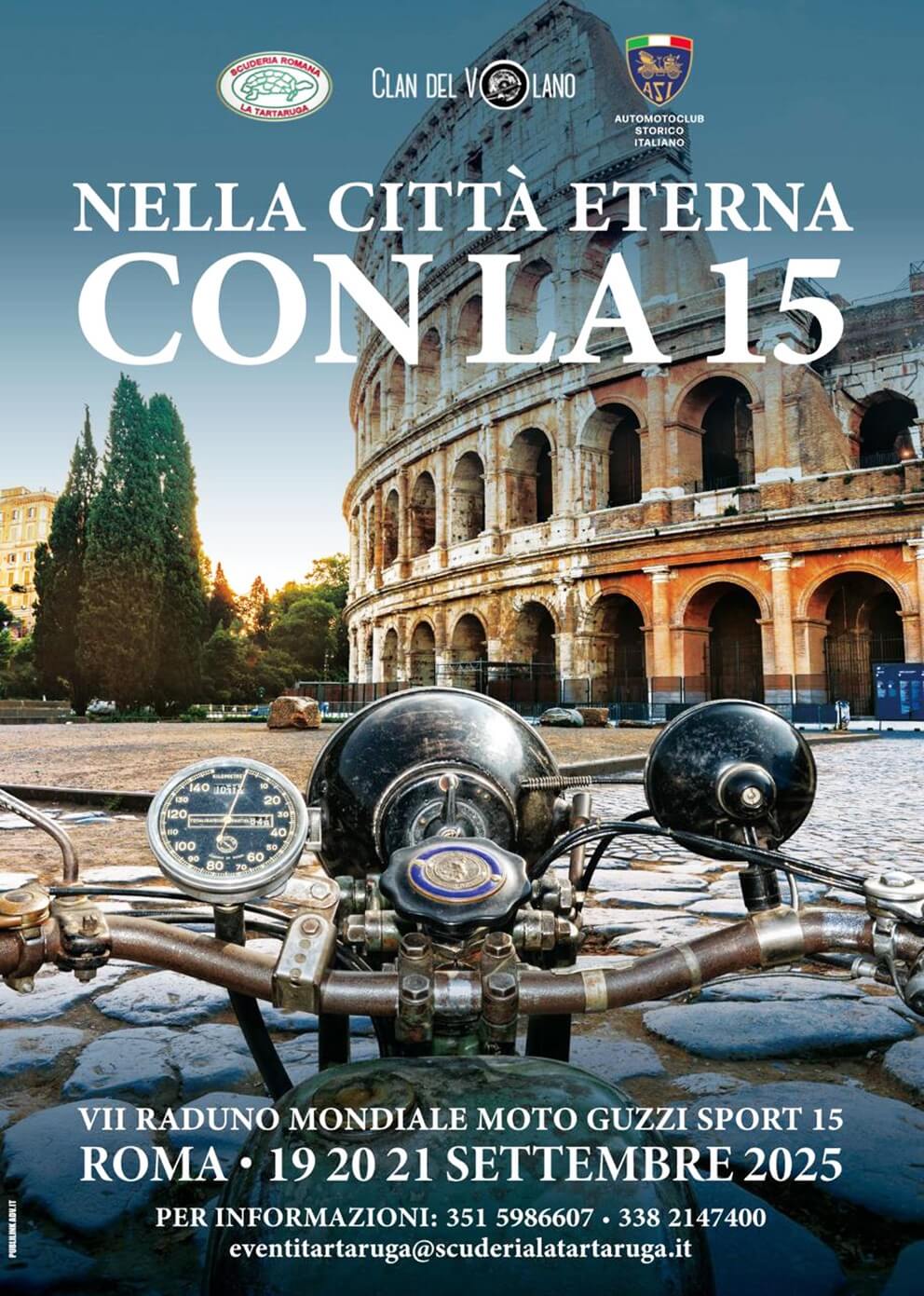 Il rombo delle Sport 15 all’ombra delle vestige classiche della latinità. Le nostre amate motociclette di Mandello del Lario ci regaleranno a settembre un’altra grande soddisfazione. Grazie agli amici del Clan del Volano i preziosi pezzi da collezione espressione degli anni Trenta, raccolti negli anni dal noto sodalizio, daranno vita al VII Raduno Mondiale dedicato a Sport 15, modello oggi ritenuto uno status symbol, sinonimo di passione e volontà di preservare il passato, custodendo una tradizione e una eredità uniche, tramandandole alle giovani generazioni.