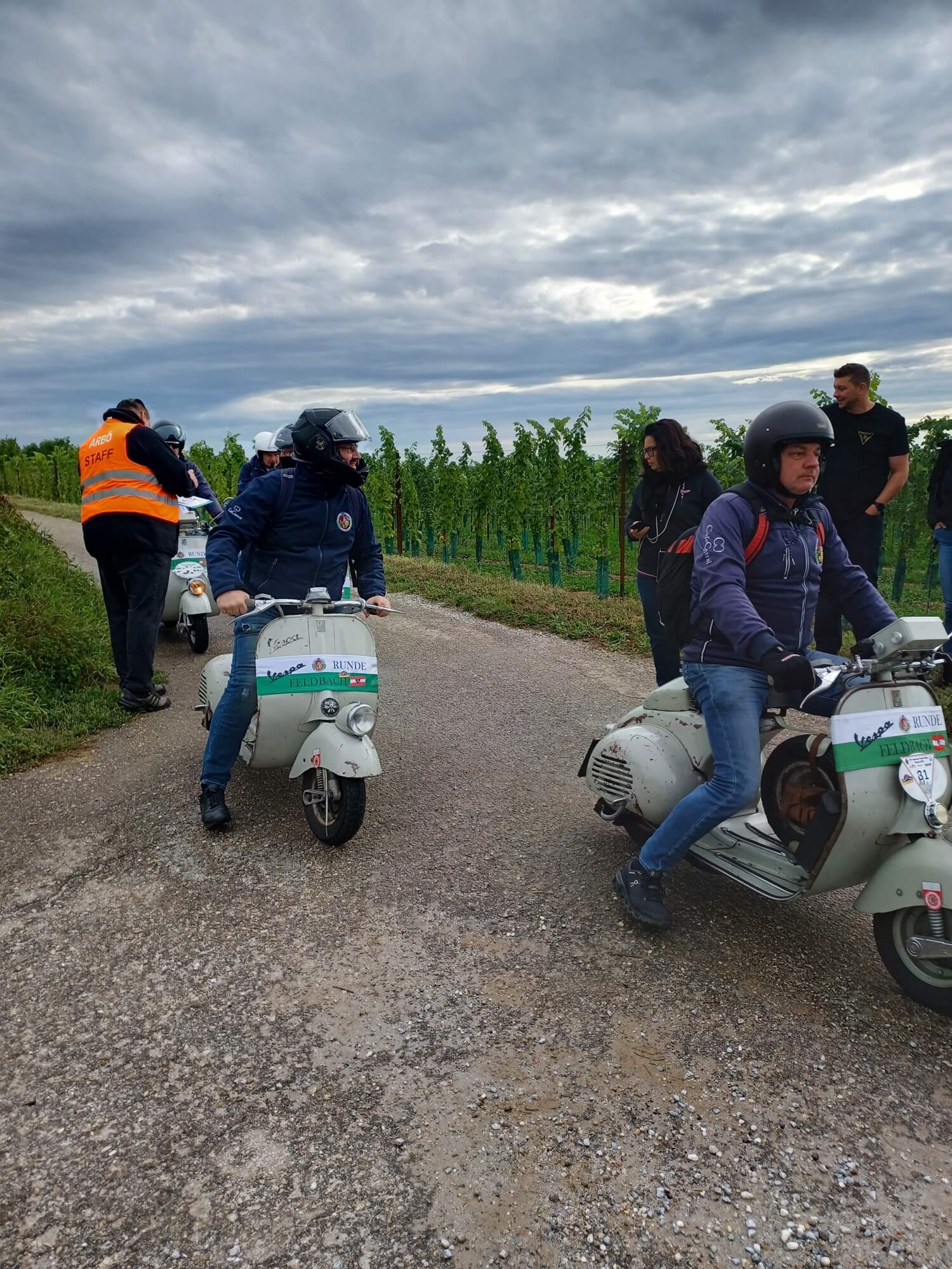 L’accoglienza è iniziata già dal venerdì, con il ritiro dei numeri di partenza e una calorosa ospitalità organizzata dal Vespa Club locale nel centro cittadino, tra stand, cibi e bevande tipicI. Nonostante le previsioni meteo poco favorevoli, il weekend si è svolto con condizioni ideali, asciutte e miti, salvo poche gocce di pioggia durante l’ultima prova speciale la domenica.