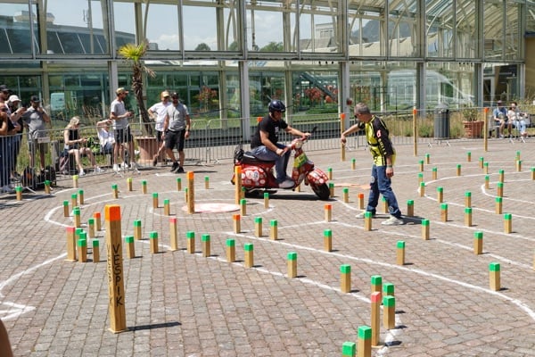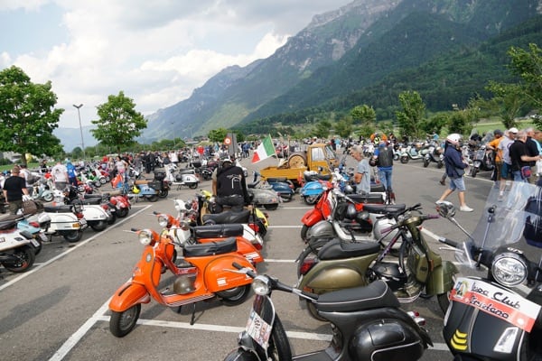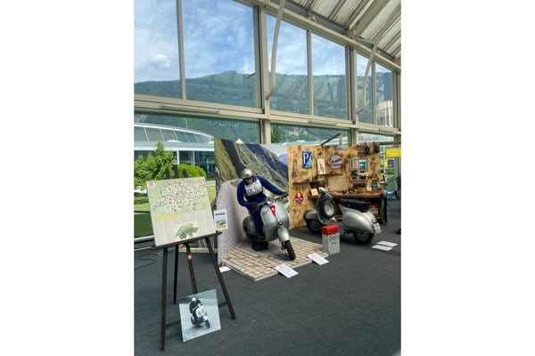 Punto di ritrovo dei partecipanti – soci di Vespa Clubs worldwide, cui si sono aggiunti numerosi Vespa fans – è stato il Vespa Village, allestito alle porte della città presso lo Jungfrau Park di Interlaken, animato con stand enogastronomici, di club, da live music e DJ. L’importatore Ofrag ha allestito uno shop all’ingresso principale, garantendo un servizio officina per tutti i partecipanti. E ancora, all’interno del Village, lo stand del Museo Piaggio di Pontedera che ha esposto una rara Vespa 50 prima serie del 1963, sezionata e utilizzata dall’allora scuola tecnica Piaggio per il training dei meccanici.