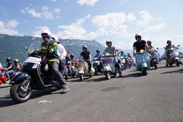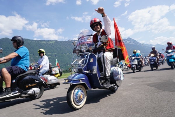 Interlaken (Svizzera). Dal 15 al 18 giugno 2023 – sulle rive del lago di Thun, nella città di Interlaken (Berna) – si è svolto l’atteso e più importante raduno mondiale dei Vespa Clubs. Edizione 2023 dei Vespa World Days promossa dal Vespa Club Svizzera, supportato da un comitato organizzatore di Vespa Clubs affiliati e dall’importatore Ofrag, con l’egida del Vespa World Club.