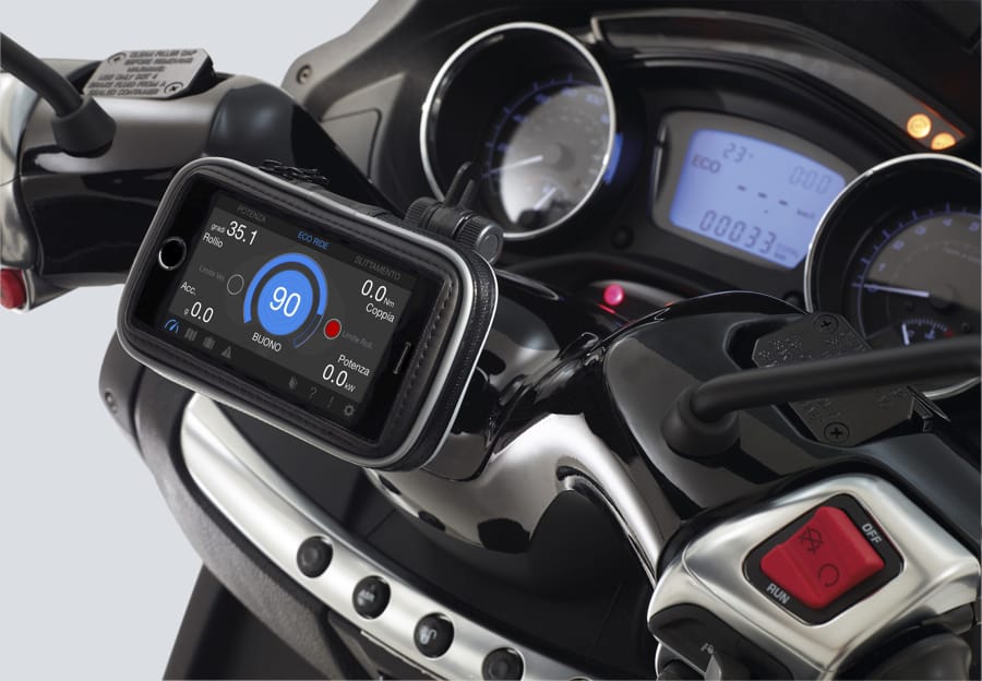 ESCLUSIVO SISTEMA PIAGGIO MULTIMEDIA PLATFORMUn'altra eccellenza ed esclusività di Piaggio è il Piaggio Multimedia Platform, sistema che consente la connessione dello smartphone al sistema elettronico di bordo trasformandolo in uno strumento dalle molteplici funzioni, un vero computer in grado di visualizzare simultaneamente informazioni come tachimetro, contagiri, ma anche potenza e coppia del motore istantaneamente erogate, accelerazione longitudinale, grado di inclinazione raggiunto in piega, consumo di carburante istantaneo e medio, velocità media e voltaggio batteria e molto altro ancora.