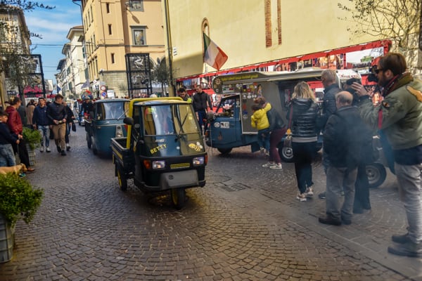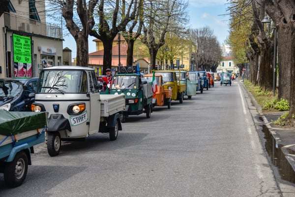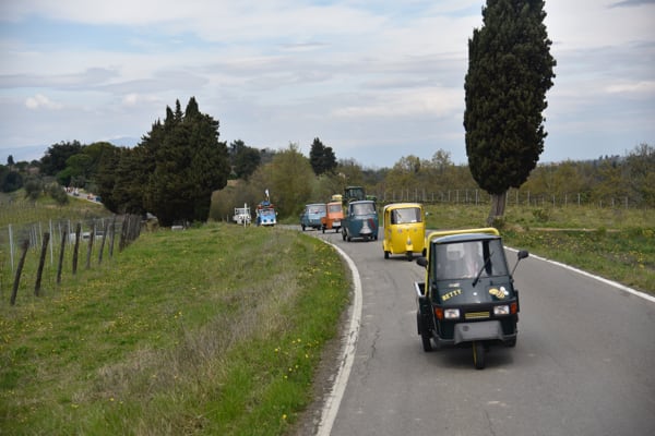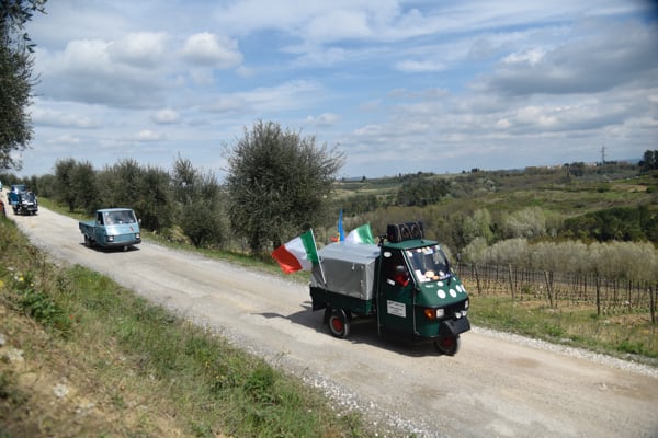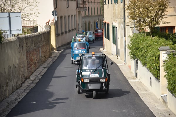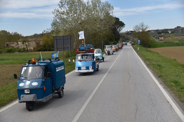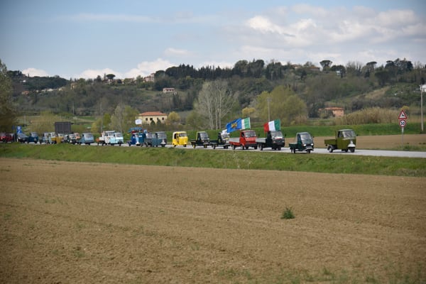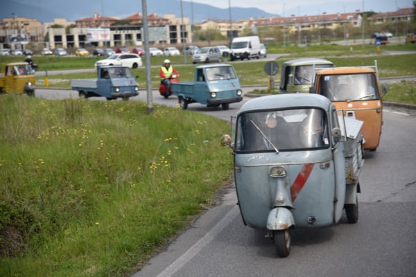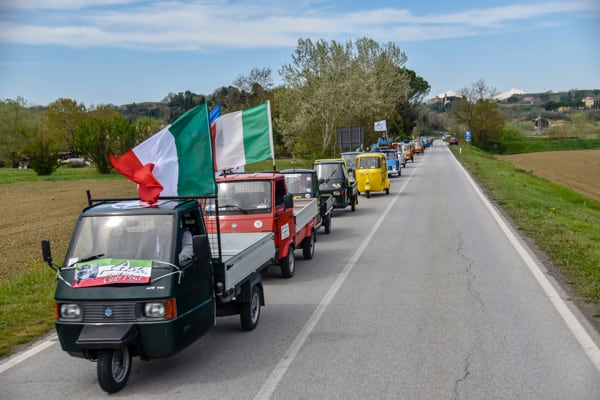 È stata proprio la visita alla linea di produzione dell’“Apino”, attiva ininterrottamente dal 1969 all’interno storico stabilimento di Viale Rinaldo Piaggio, una delle attività più emozionanti della giornata conclusiva di un fine settimana all’insegna dell’amore per il tre ruote da lavoro più simpatico al mondo. Sono stati oltre 130 gli iscritti al raduno e oltre un centinaio i veicoli Ape giunti a Pontedera da ogni parte d’Italia – il più lontano dalla Puglia – ma anche da Germania, Francia, Austria, Svizzera e Slovenia: una pittoresca carovana che per tutto il weekend ha riempito di colore il territorio circostante con suggestive escursioni e visite guidate, come quella che nella giornata di sabato 13 aprile ha raggiunto il Castello dei Vicari nell’antico borgo medievale di Lari.