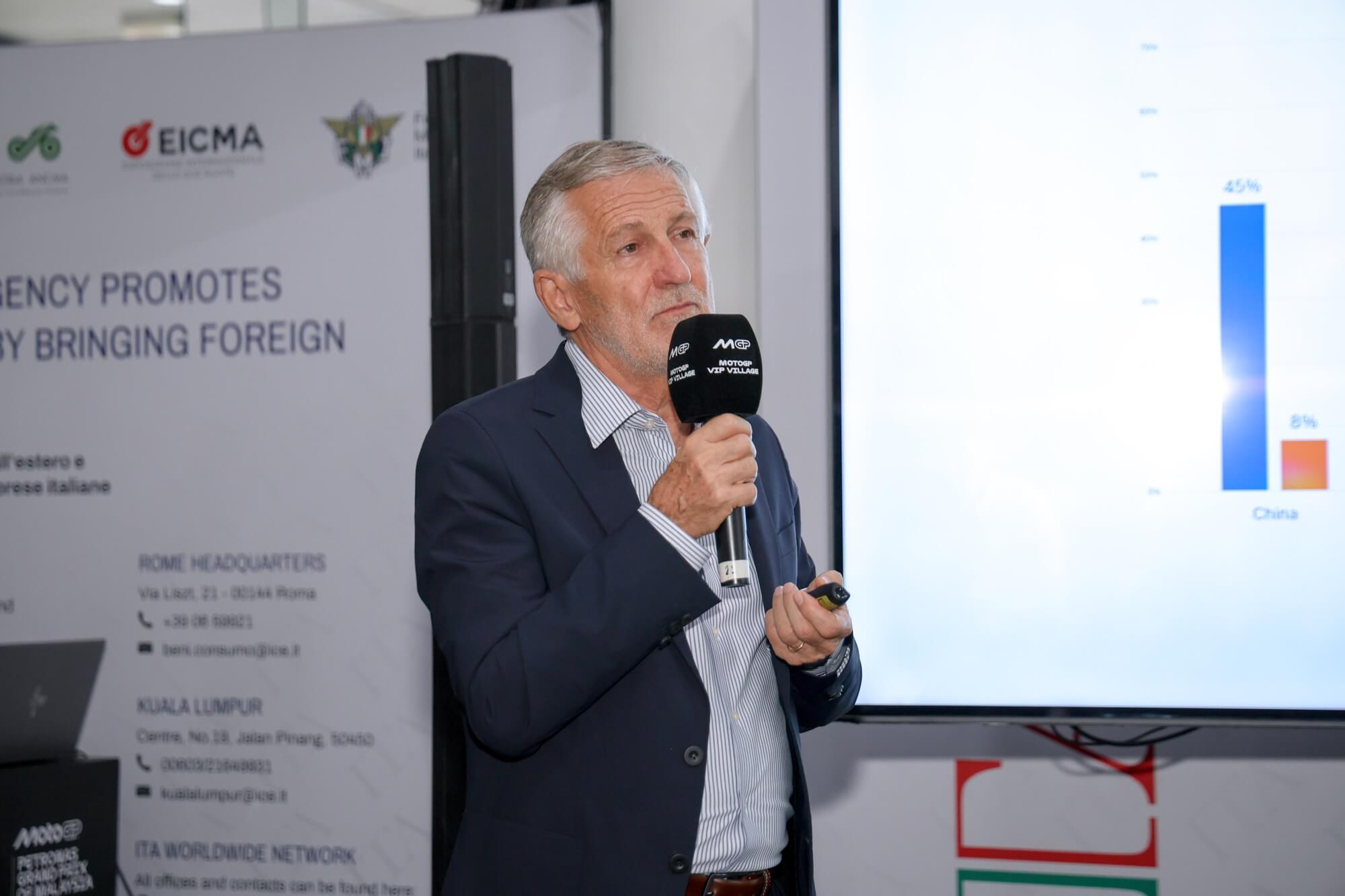 Matteo Zoppas, Presidente ICE: “Sfruttando la tappa del MotoGp di Sepang l’ICE, Istituto del Commercio Estero, ha organizzato un evento di incontri tra imprese italiane e Clienti provenienti da più nazioni asiatiche. Un’iniziativa che concretizza e unisce la diplomazia della crescita della Motorbike Economy in un contesto ideale di diplomazia dello sport facendo leva sul carattere di attrattività anche mediatica, sui clienti, della manifestazione.
