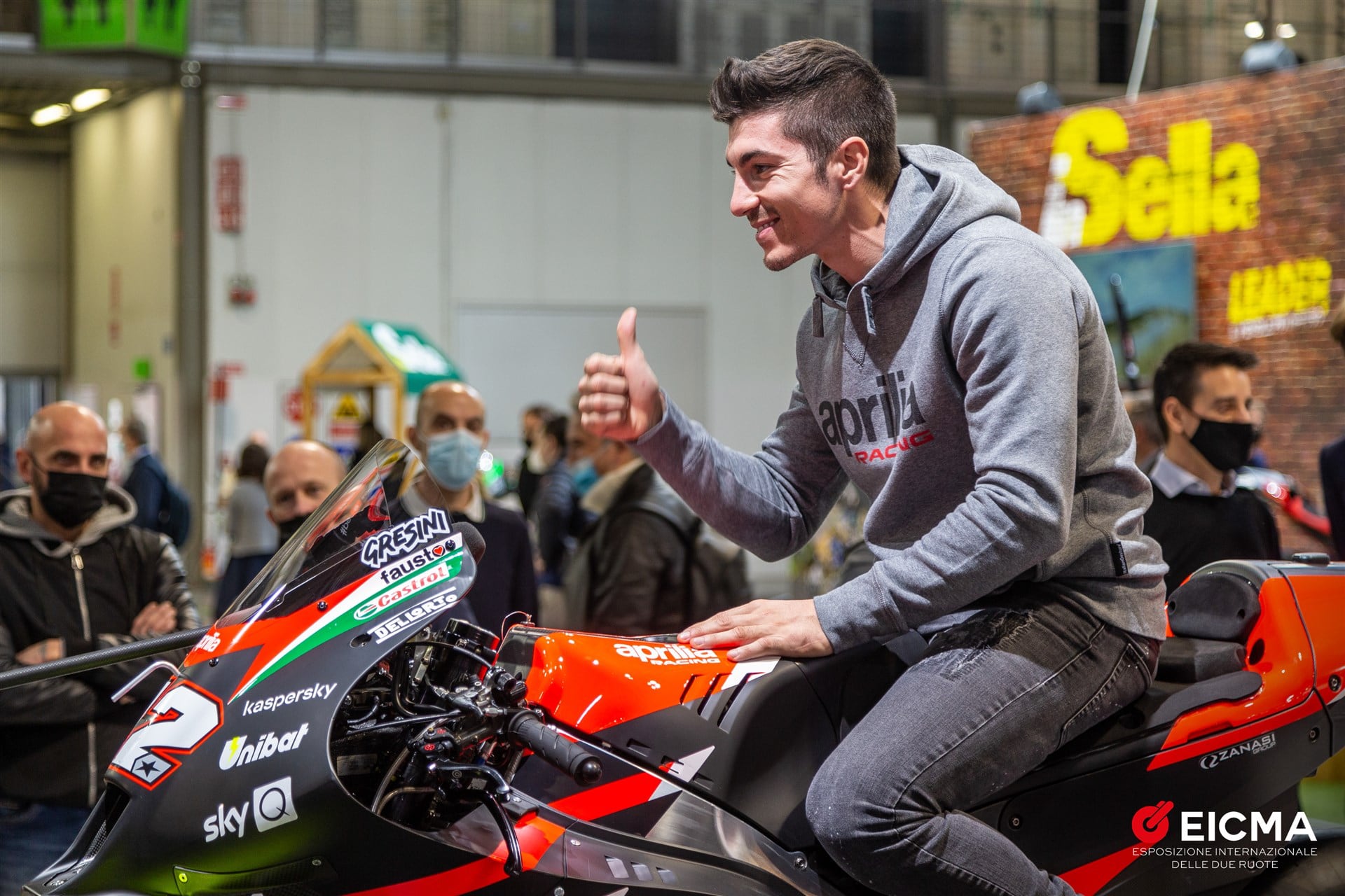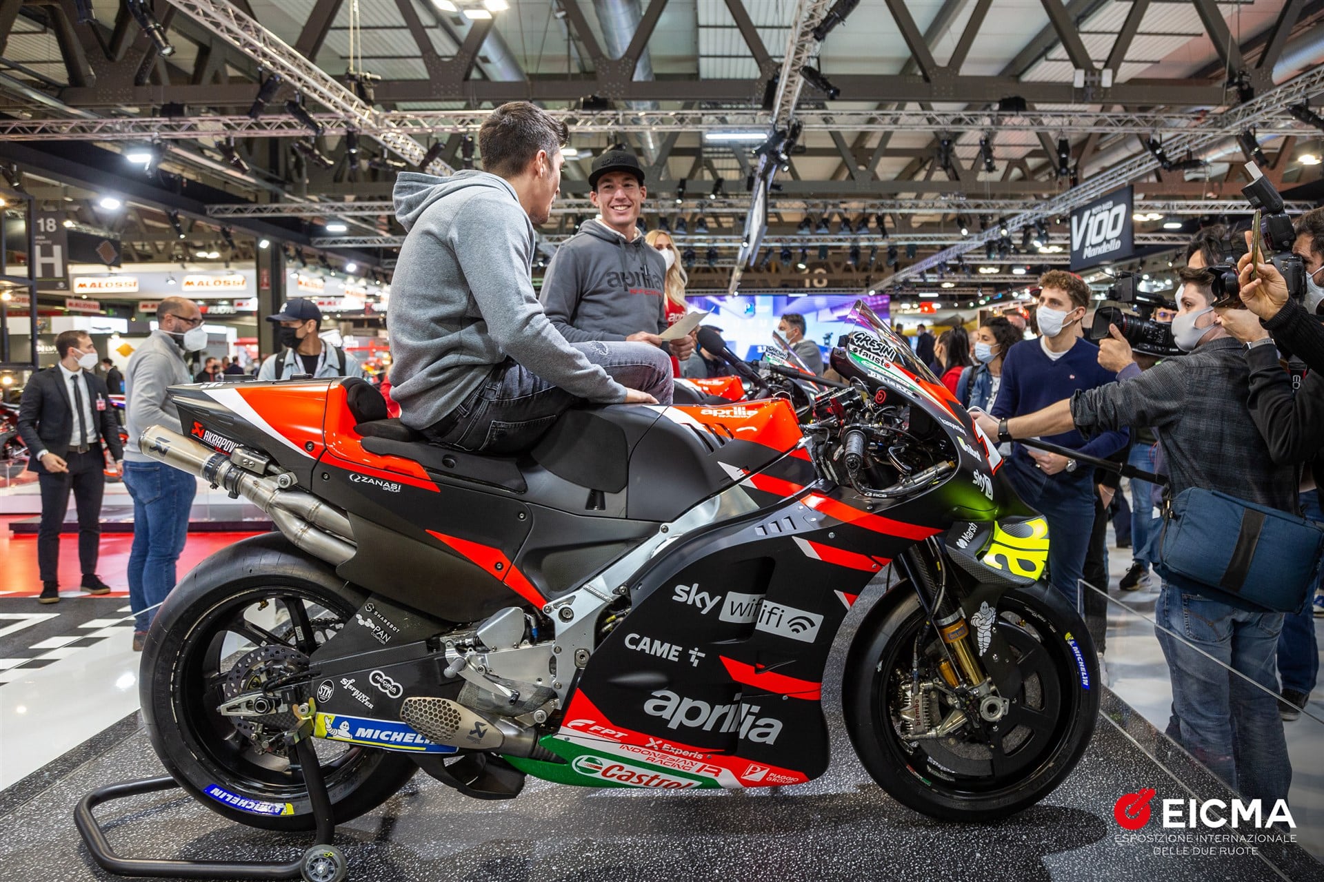 TRA I PROTAGONISTI DELL’ESPOSIZIONE INTERNAZIONALE DI MILANO, APPLAUDITI DAGLI APRILIA FANS.