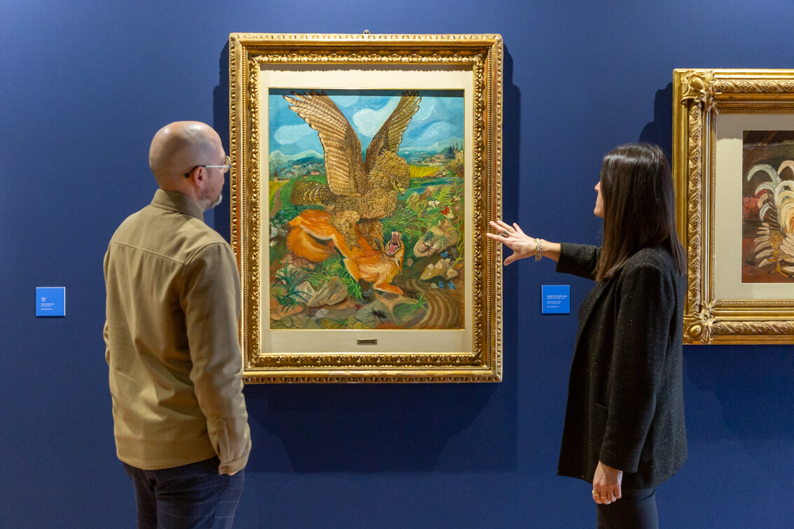 Il percorso della mostra conduce il visitatore attraverso le tappe fondamentali della vita e dell’attività artistica di Ligabue, svelando alcune delle sue opere più emblematiche. Tra queste spiccano i celebri autoritratti e le sue iconiche raffigurazioni di animali feroci: tigri maestose, leopardi, rapaci in azione o impegnati in lotte per la sopravvivenza. Un viaggio immersivo in una giungla aspra e magnetica, che esprime con forza l’intensità visiva e simbolica del mondo interiore dell’artista. Che continua ad attrarre e ad affascinare generazioni di ammiratori, di ogni età.