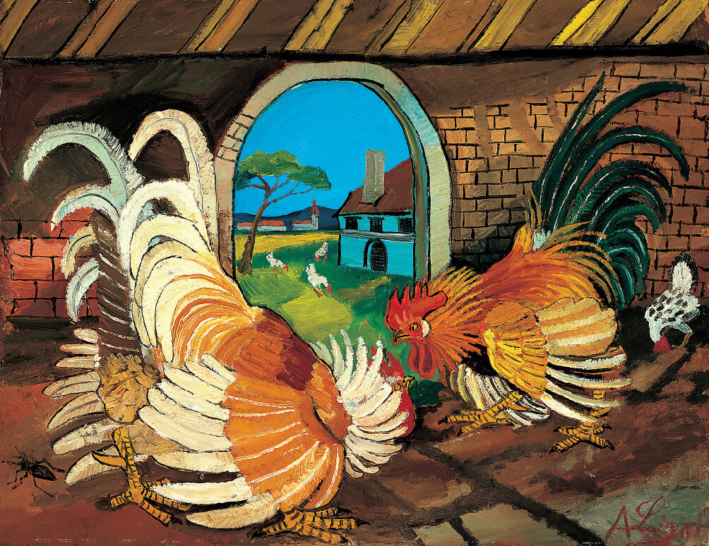 Antonio Ligabue, Lotta di galli (olio su faesite, 1954).