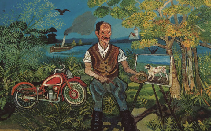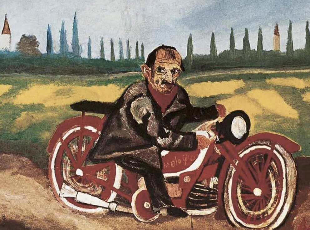 Per Ligabue la moto diventa una delle cose più importanti e infatti viene anche inserita in alcuni dei suoi dipinti, come Autoritratto con moto. Arriverà a possederne 9, tutte uguali, per provare a sé stesso che poteva permetterselo e che era riuscito ad affermarsi come un bravo pittore”.