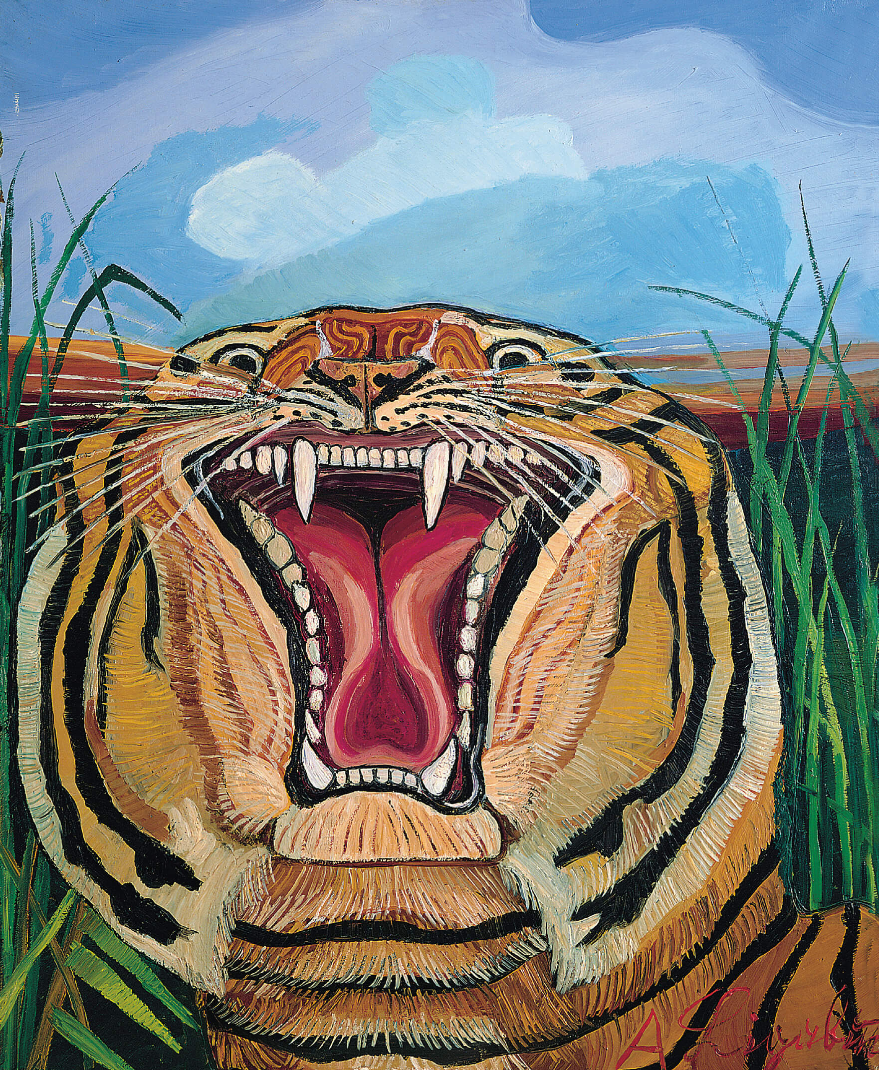 Antonio Ligabue, Testa di tigre (olio su tela, 1957).