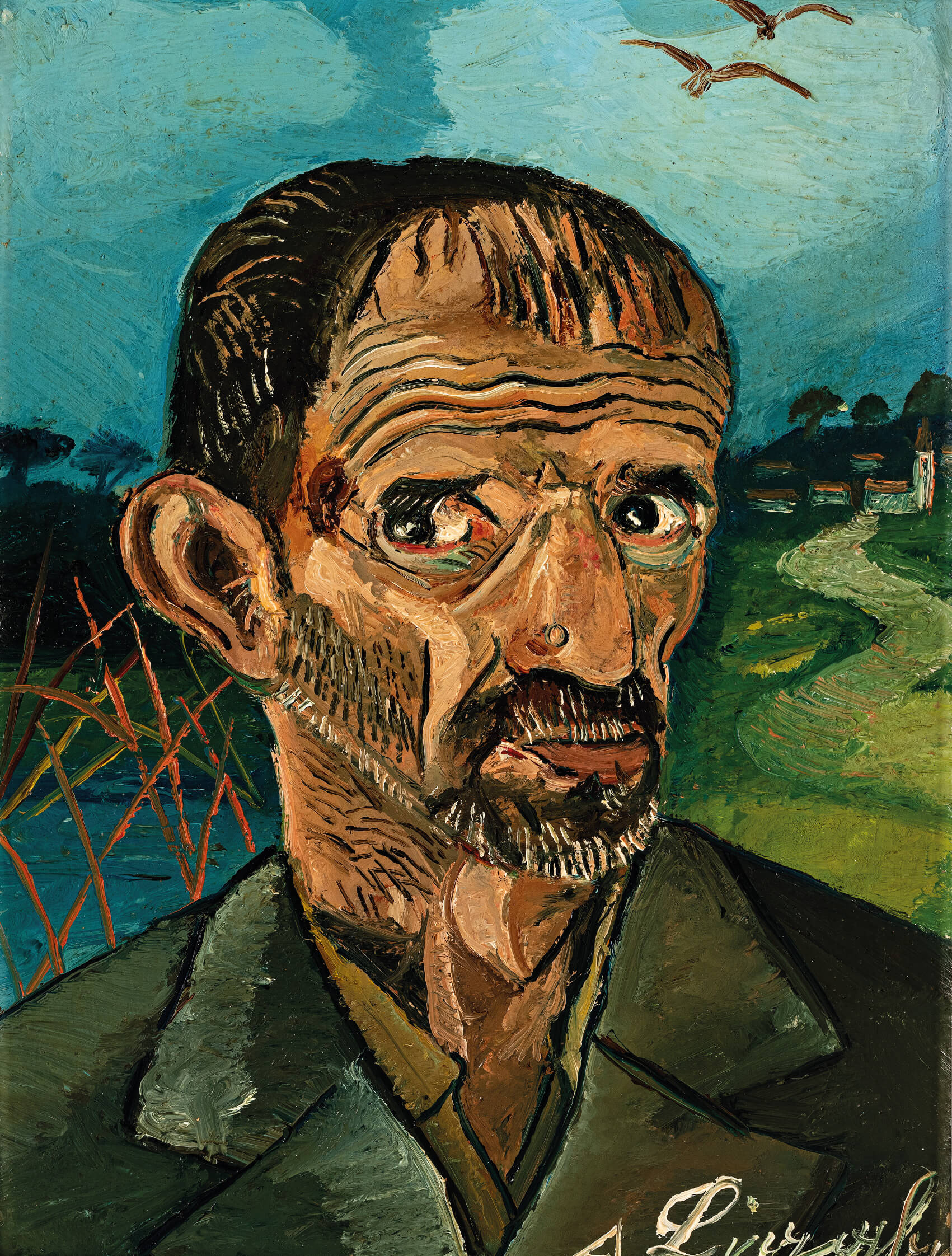 Antonio Ligabue, Autoritratto (olio su faesite, 1956).