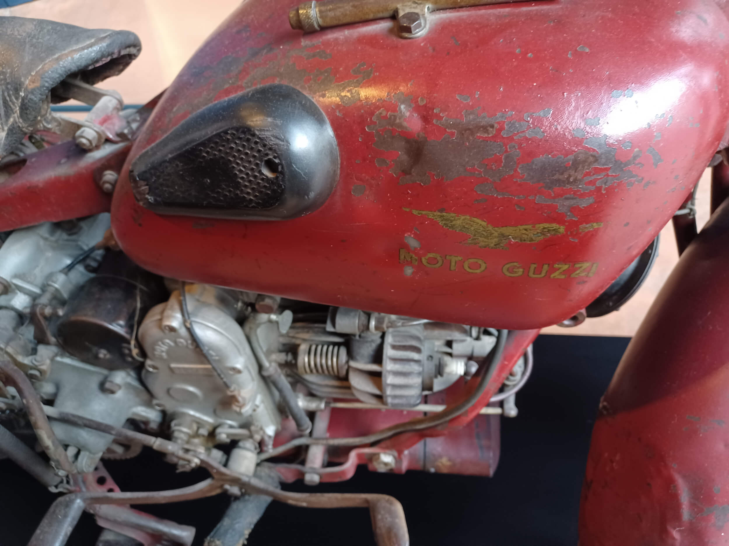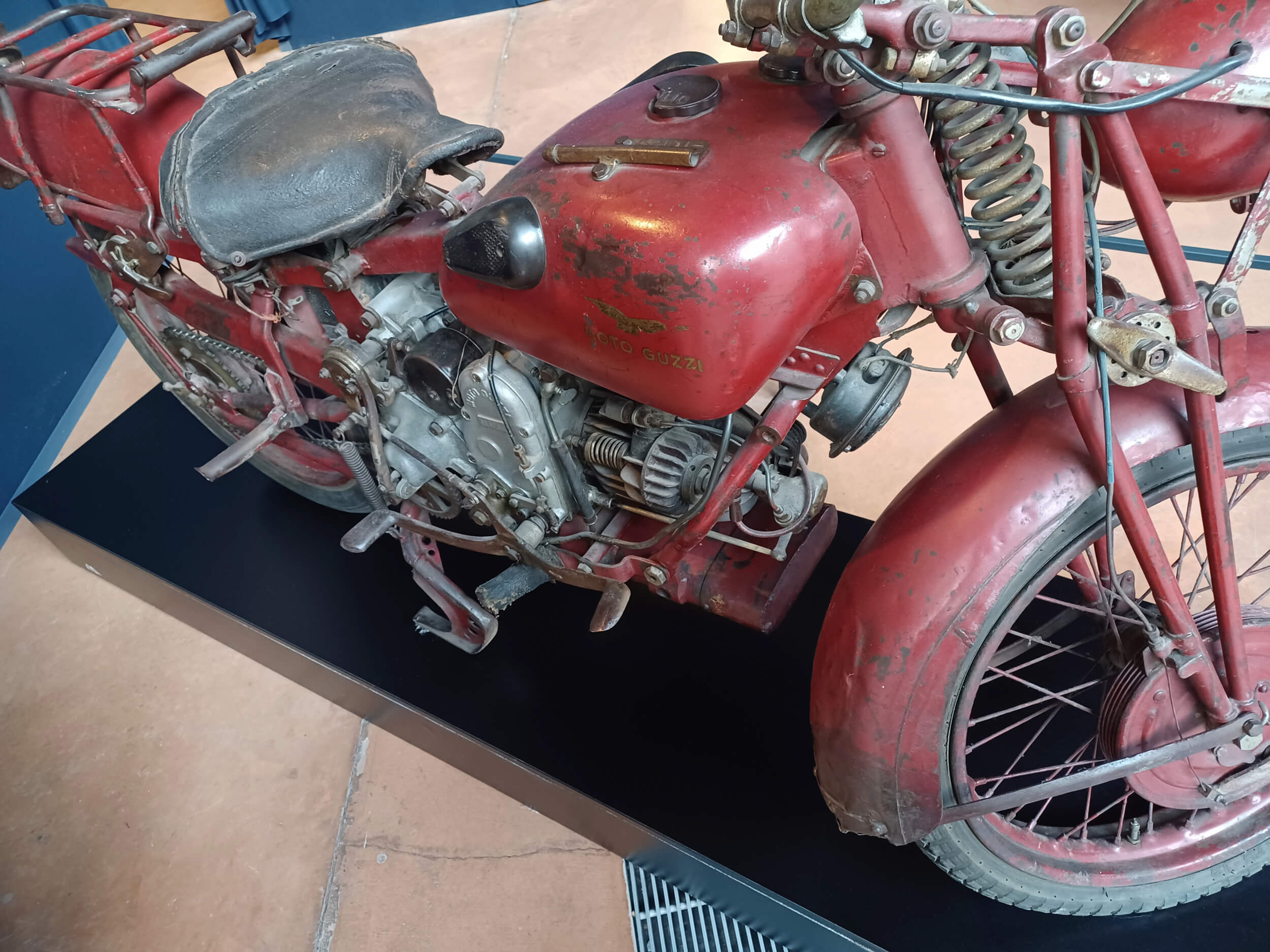 (Foto Wide mag). Si tratta di un modello Moto Guzzi Alce degli anni Quaranta, non originale in quanto modificato in alcune parti (come manubrio, parafango posteriore, marmitta e portapacchi) per convertirlo ad uso civile. Infatti, Alce era una versione preparata dalla Guzzi per le truppe militari pre e durante la Seconda guerra mondiale (prodotta dal 1939 al 1945 circa; anche in modello biposto, con doppia sella e doppio manubrio). Gli esperti storici del Moto Guzzi World Club docet.
