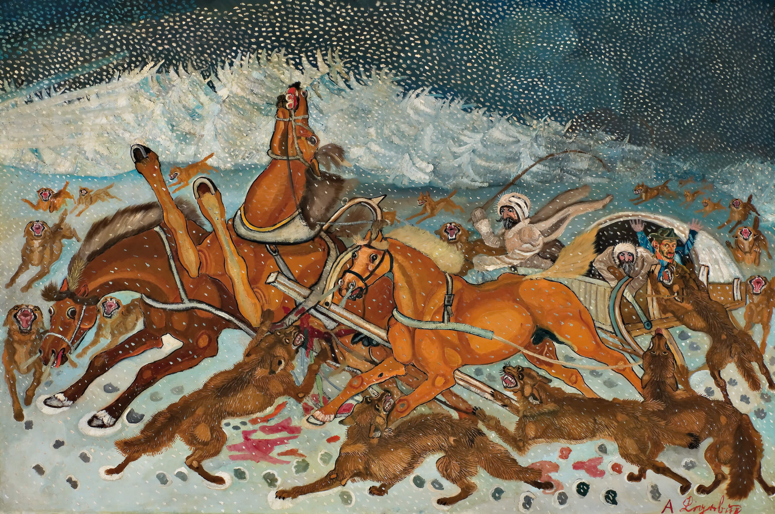 Antonio Ligabue, Traversata della Siberia (olio su tela, 1959).