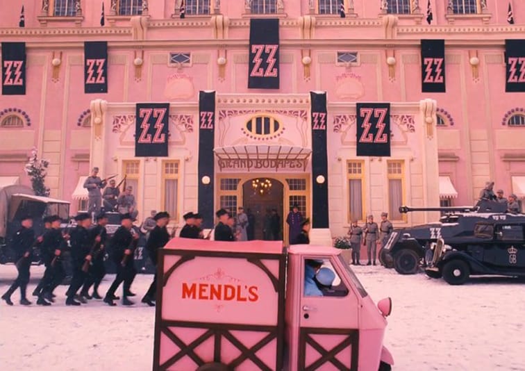 APE DA OSCAR IN LIVREA ROSA NEL FILM PLURIPREMIATO “GRAND BUDAPEST HOTEL” DI WES ANDERSON (2014) CITATO NEL LIBRO DI GIORGIO SARTI.